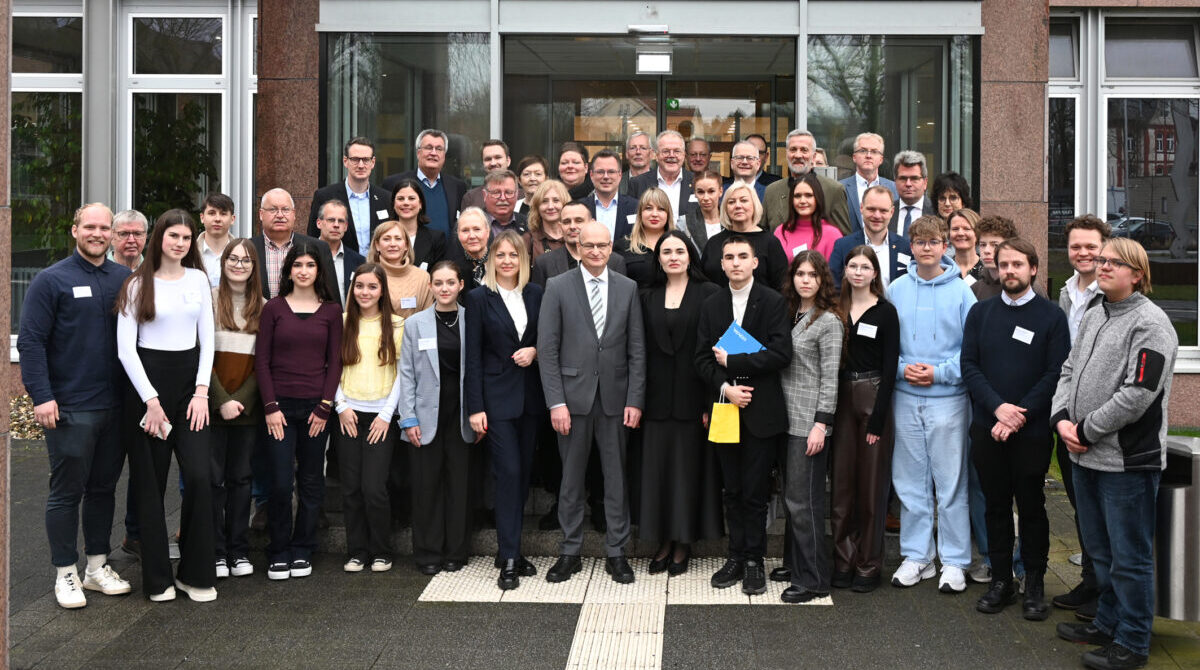 Seit 2023 verbindet den Kreis Steinfurt eine Solidaritätspartnerschaft mit der ukrainischen Stadt Tscherkassy. Auf die schriftliche Besiegelung der Partnerschaft vor knapp drei Jahren folgte nun ein erstes persönliches Kennenlernen im Rahmen des Besuches einer zwölfköpfigen Delegation aus der Ukraine im Kreis Steinfurt. Landrat Dr. Martin Sommer begrüßte die Gäste – darunter zwei stellvertretende Bürgermeisterinnen, Verwaltungsmitarbeitende sowie Schülerinnen und Schüler – bei einem offiziellen Empfang im Steinfurter Kreishaus, der im Zeichen des Austauschs und gegenseitiger Wertschätzung stand.