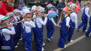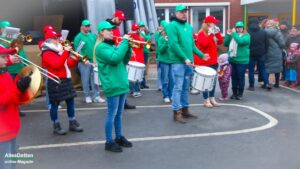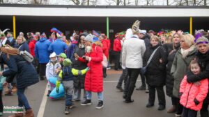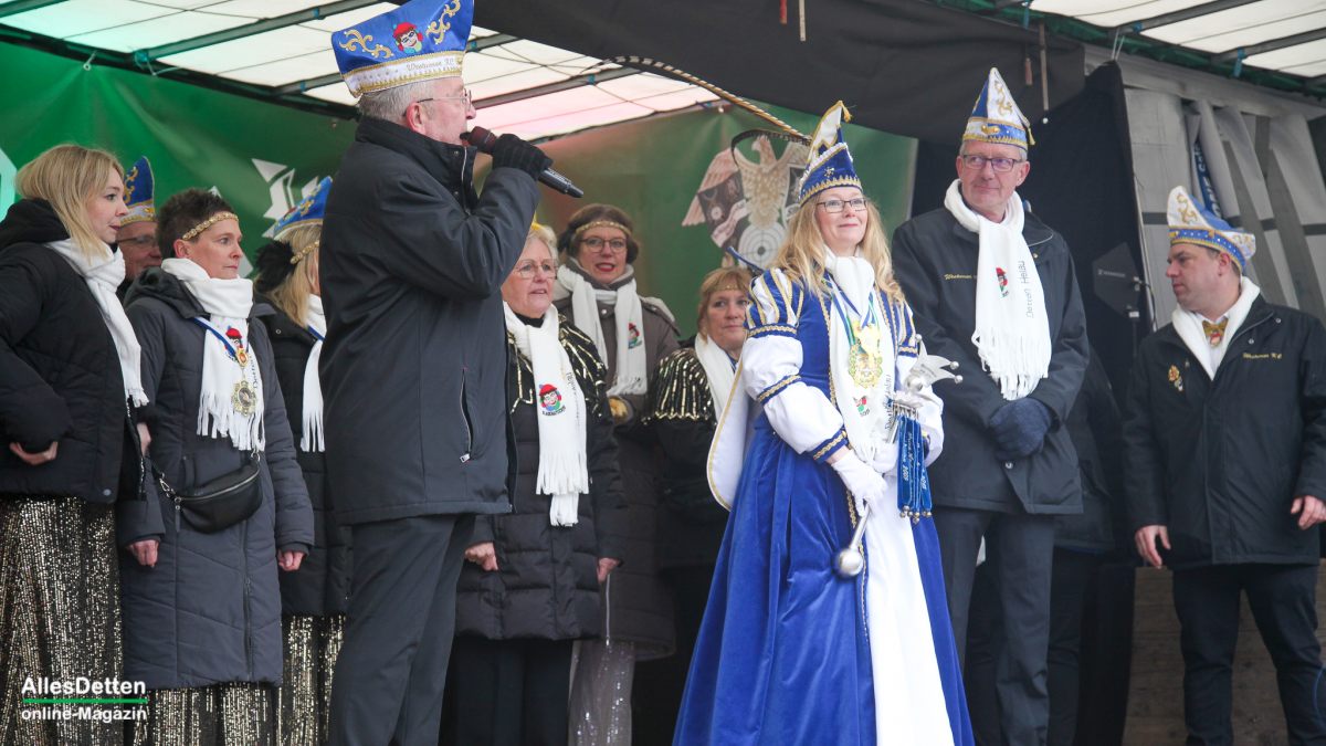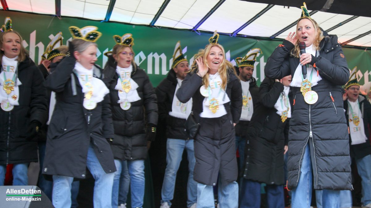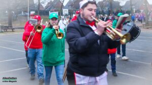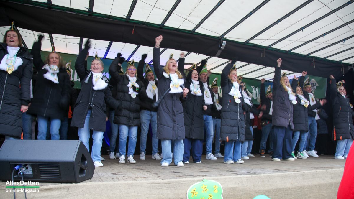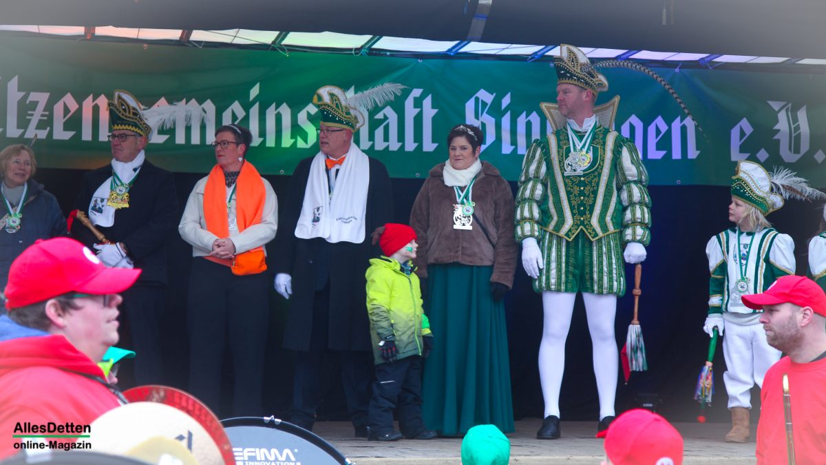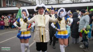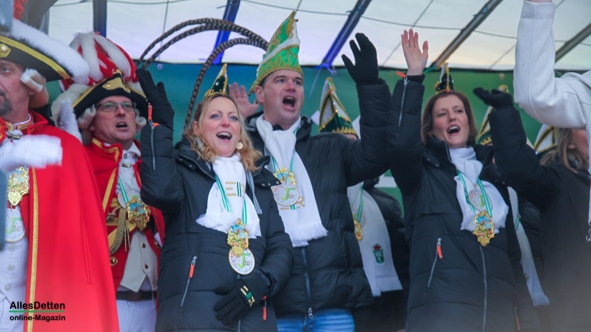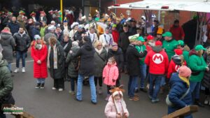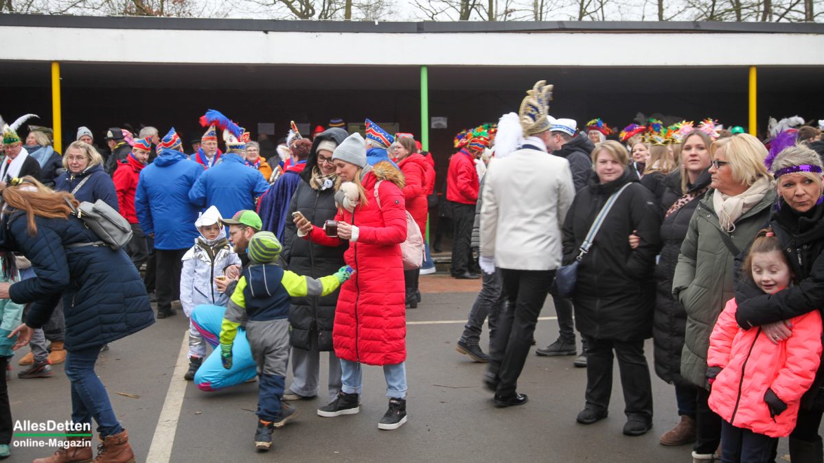 Es war nur ganz minimal über dem Gefrierpunkt, eigentlich auf der Temperaturskala mit dem menschlichen Auge kaum zu erkennen. Und trotzdem haben die vielen Närrinnen und Narren auf dem Schulhof der Emanuel-von-Ketteler-Schule in Sinningen eisern durchgehalten, – wussten sie doch alle, dass es nach dem etwa vierstündigen Programm auf der Bühne in die warme Mehrzweckhalle geht – und da sollte dann noch bis in den Abend hinein so richtig heiß abgefeiert werden.