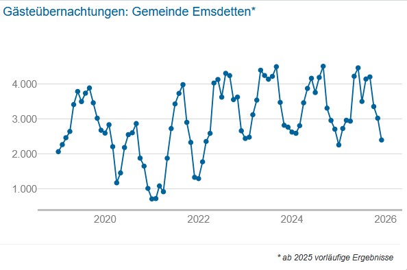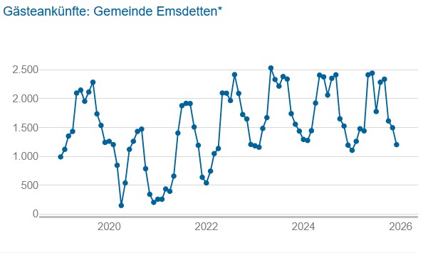 „Die Zahlen zeigen, dass sich der Tourismus in Emsdetten – wie im gesamten Münsterland und im Kreis Steinfurt – auf einem stabilen, insgesamt hohen Niveau eingependelt hat“, ordnet Judith Nibbrig, Tourismusexpertin des Verkehrsvereins Emsdetten, die Ergebnisse ein. Mit Blick auf die Statistik erinnert sie jedoch auch an eine differenzierte Betrachtung. „Die amtlichen Zahlen bilden nur einen Teil der Realität ab“, so Nibbrig. „Erfasst werden ausschließlich Beherbergungsbetriebe mit mehr als zehn Betten. Ferienwohnungen, Privatunterkünfte, Tagesgäste oder Fahrradtouristen ohne Übernachtung tauchen in der Statistik gar nicht auf.“ Zudem könnten Schwankungen durch Renovierungsmaßnahmen, Ferienzeiten, Witterungseinflüsse – wie der sehr verregnete Juli 2025 – oder eine geringe Zahl an Großveranstaltungen in der EMS-HALLE infolge von Bauarbeiten eine Rolle spielen.