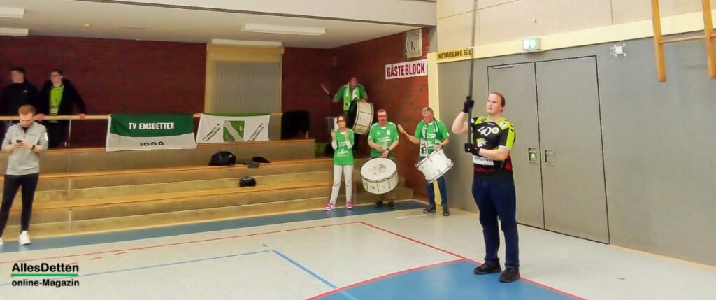 Nach Abpfiff bedankten sich die TVE Spieler bei allen mitgereisten Fans per Handschlag für die Unterstützung. Gut, dass einige Emsdettener Fans den Weg nach Ostwestfalen angetreten haben. Ohne sie hätte man in der wohl kleinsten Halle der Staffel das Gefühl haben können, es handele sich um ein Vorbereitungsspiel zweier Oberligevereine. So wenig Stimmung kam von den drei Sitzreihen herüber.