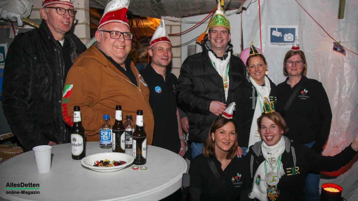 Eng war es in der Wagenbauschoppe am Goldbergweg, da blieb kaum Platz für den Elferratstanz. Aber alle wie sie da waren, waren sich einig, jetzt ist die schönste Jahreszeit nicht mehr aufzuhalten. Mittendrin dabei auch Stadt-Jubelprinzenpaar Paul und Petra Müllmann mit ihrem damaligen Stadtelferrat.