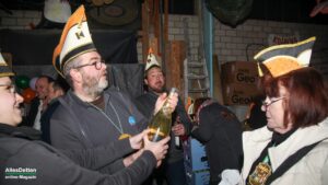 Zu einem ordentlichen Jubiläum gehört, dass man sich Gäste, Freunde einlädt. Und so kamen dann auch einige Gratulanten, – unter anderem das neue Stadtprinzenpaar Tobias und Jessica Tecklenborg mit Gefolge.