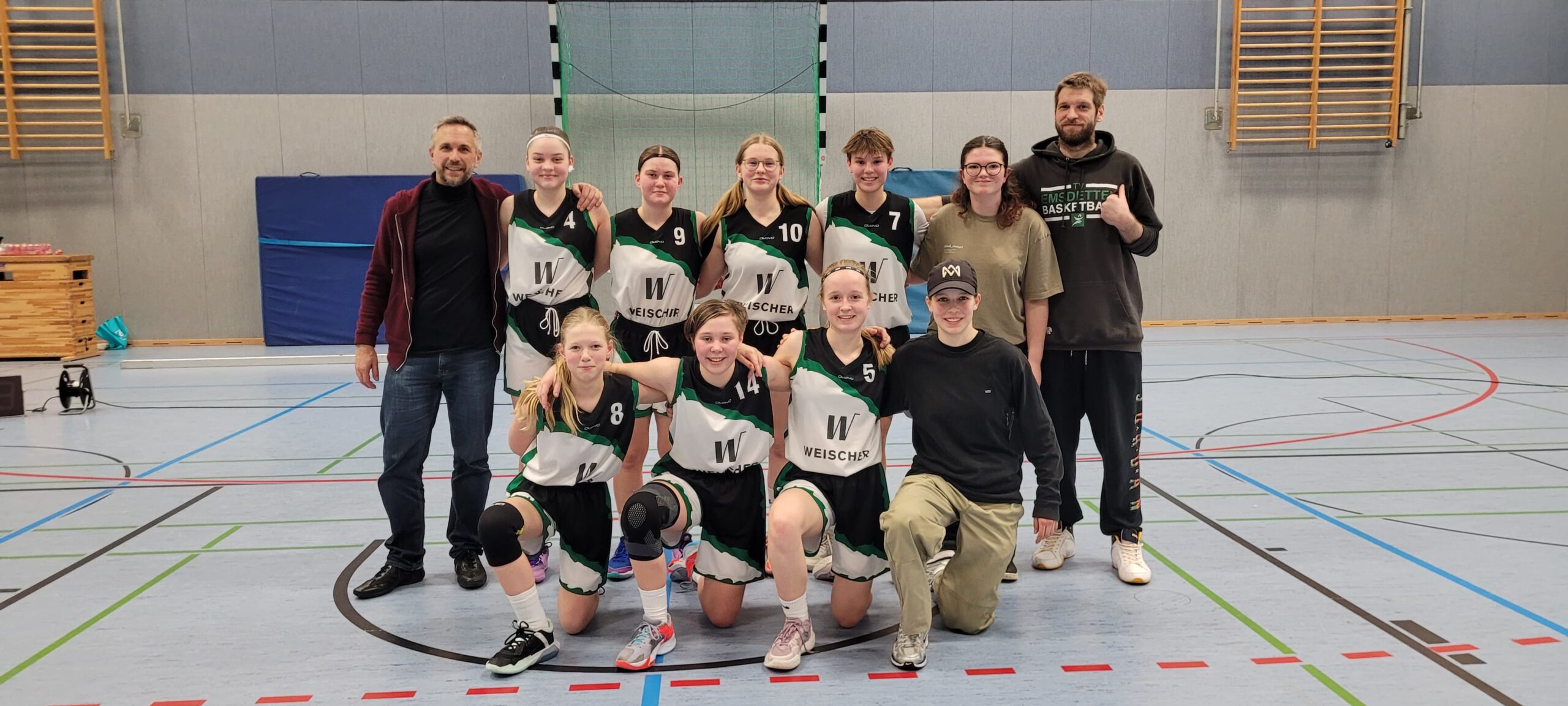 Zwei siegreiche Spiele innerhalb von drei Tagen! Die U-16-Mädchenbasketballerinnen des TVE setzten am vergangenen Samstag und Montag ihre Siegesserie fort. Sie kletterten auch in der Tabelle weiter nach oben und belegen aktuell den vierten Platz. Am Samstag setzten sie ihre „Revanche-Tour“ vor heimischem Publikum fort und rächten sich zum vierten mal in der zweiten Saisonhälfte für eine vorherige Niederlage aus dem Hinspiel. Diesmal war es das Team des Weseler TV.