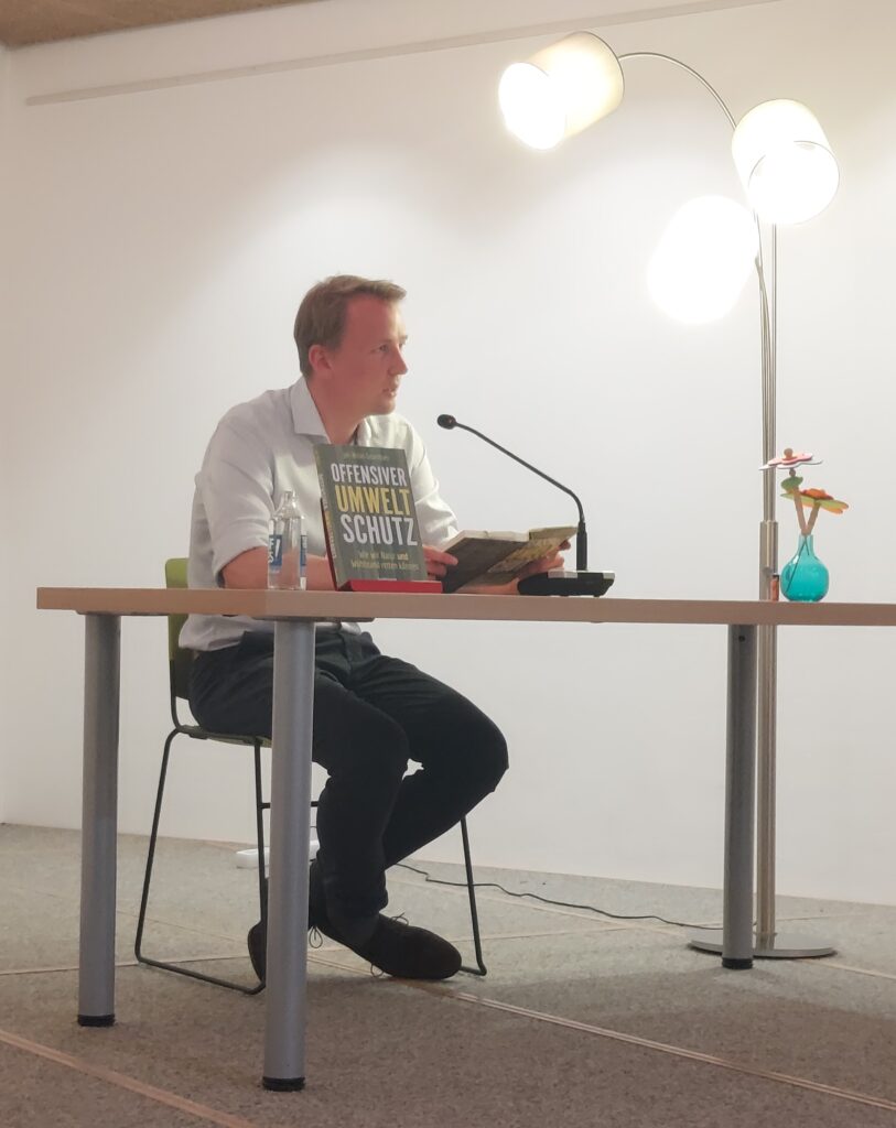 Wie Jan-Niclas Gesenhues in seinem neuen Buch “Offensiver Umweltschutz” beschreibt, könne der Umwelt- und Naturschutz nur zusammen gemeinsam mit Wirtschaft, Gesellschaft und Politik gemacht werden. Insbesondere das Verhältnis von Landwirtschaft und Naturschutz sorgte am Abend der Veranstaltung für intensive und diverse Diskussionen. Ist die Landwirtschaft einer der Hauptverursacher für die Biodiversitätskrise?