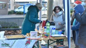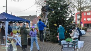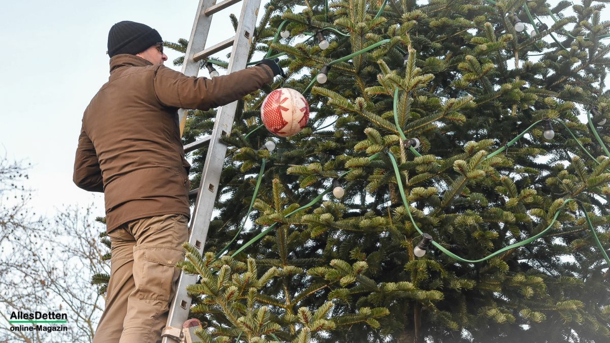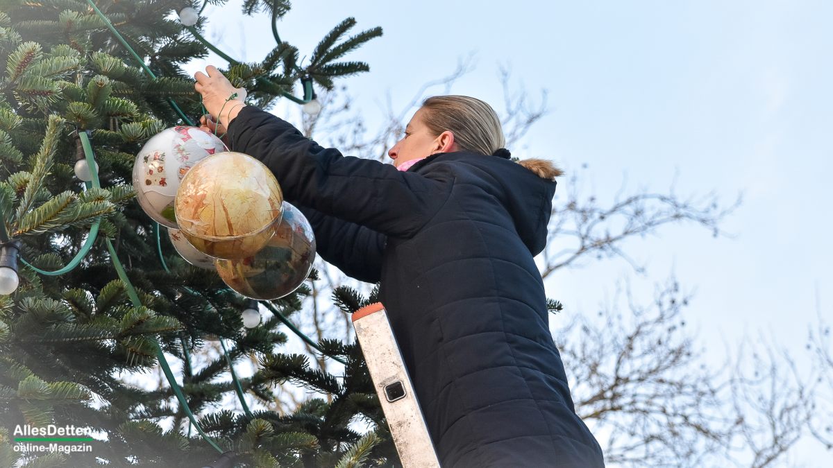 „Die Baum“ erstrahlt in gewohntem Glanz. – Passend zum ersten Adventswochenende wurde auf dem Reckenfelder Marktplatz der große „Die Baum“ (Weihnachtsbaum) geschmückt. Schon seit 12 Jahren kümmert sich ein Team darum, dass „Die Baum“ schön über den Marktplatz erstrahlt. „Es ist immer sehr gemütlich und stimmig, wenn wir uns treffen.“, so Manuela Schmidt, Sprecherin des Arbeitskreises. Für Kinder ist das Schmücken eine spannende Sache. Etwas Gebäck und leckere Getränke standen ebenfalls für die Helfer parat.