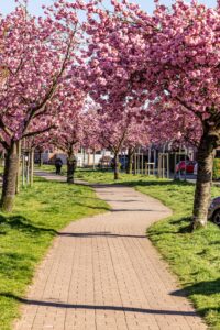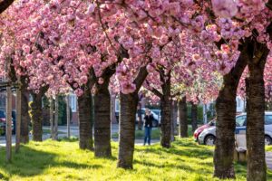 …sticht ein kleiner Streifen in Emsdetten durch seinen imposanten Blütenstand hervor. Der Straßenzug Annette-von-Droste-Hülshoff-Allee und Westring. Die Kirschblüte vermittelt hier ein ganz besonderes Highlight. Da macht es Spaß als Radfahrer oder Spaziergänger die Allee zu nutzen. Frank Kötters hat seine Eindrück mit seiner Kamera für uns festgehalten: