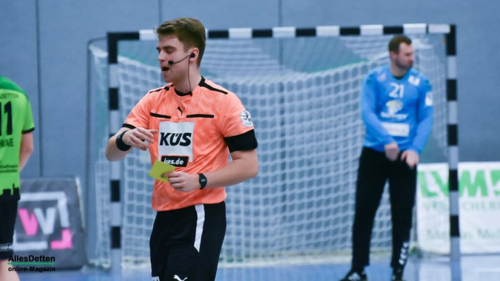 Die Schiedsrichter spielten fleißig mit, verteilten die Zeitstrafen auch an den Bänken. Sascha Bertow zeigte Emotionen, wurde dafür bestraft. Auch die Krefelder Hahn, Noll und Schmetz wurden vom Duo an der Pfeife mit Strafen bedacht. Vier Minuten vor dem Ende wurde Trainer Mark Schmetz dann ganz aus dem Innenraum verwiesen. Die rote Karte bedeutete für ihn, nicht mehr persönlich in das Geschehen eingreifen zu können. Eine abwertende Bewegung reichte für die Hinausstellung. Niemand brauchte diese rote Karte. Dass der Ballbesitz, auf Anweisung der Zeitnehmer dann zu den Gästen wechselte kann auch am Tag danach bisher niemand sachkundig erklären. Die TVE Spieler waren zum Angriff aufgestellt und mussten nach der Bestrafung des Gästetrainers den Ball auf Anweisung der Zeitnehmer abgeben. Wer das erklären kann, darf uns gern eine Email an sport@allesdetten.de zukommen lassen.