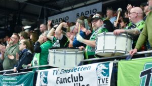 Den sportlichen Schlusspunkt durften dann die Akteure auf der Platte setzen. Robert Krass traf für die HSG zur 29:31 Führung, Robin Jansen und Maximilian Nowatzki luden dann zwei Minuten und 30 Sekunden vor dem Ende zum heißen Tanz in einer tobenden EMS-Halle. Robin Jansens 32:31 Führungstreffer brachte die Halle erst so richtig zum Kochen. Die Spieler auf beiden Seiten ließen sich von der Atmosphäre anstecken. Merten Krings ging bei einem Kontakt von Robin Jansen zu Boden und machte daraus mehr, als nötig gewesen wäre. TVE Spieler Robin Jansen ließ sich zu einer kleineren Reaktion hinreißen. Beide wurden von den Schiedsrichtern dafür mit Zeitstrafen von der Schlussphase ausgeschlossen. 39 Sekunden waren noch offen, die im Sechs gegen Sechs zuende gespielt werden mussten. HSG Spieler Pöter scheiterte an Oliver Krechel. Zu diesem Zeitpunkt standen die Zuschauer in der Ems-Halle bereits minutenlang. Nach der letzten Emsdettener Auszeit traf Tobias Reichmann zum umjubelten 33:31 Endstand.