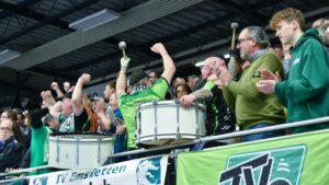 Schon vor dem Spiel wurde klar, dass hier ein echtes Spitzenspiel auf die Zuschauer wartet. Bereits weit vor Anpfiff war die EMS-Halle gut gefüllt und die Freude auf diese Begegnung war greifbar. Die Vertragsverlängerung von Yannick Terhaer, verkündet vom Leiter der Geschäftsstelle Florian Ostendorf sorgte kurz vor Anpfiff für zusätzliche gute Laune auf den Rängen.