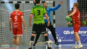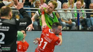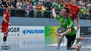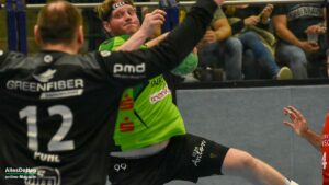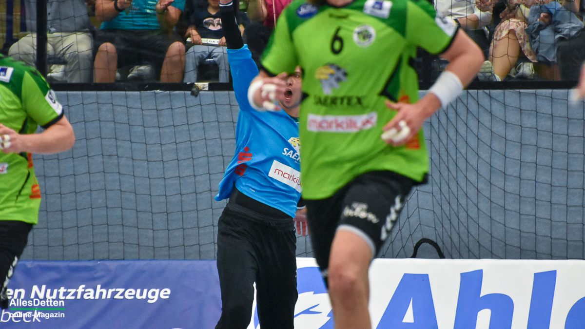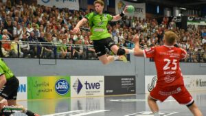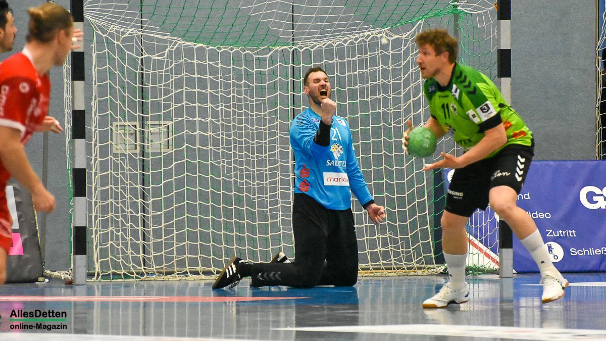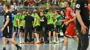 Die EMS-Halle wachte nun auf, auch die Spieler in Grün wollten noch um ihre letzte Chance kämpfen und stemmten sich gegen die Niederlage. Das Spiel wurde gedreht. Und als Nick de Kuyper nach über 53 gespielten Minuten und seinem Treffer zum 23:20 jubelnd abdrehte, dachten wohl die wenigsten daran, dass hier noch etwas abgeschenkt wird.