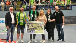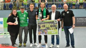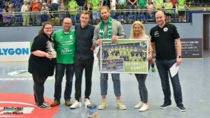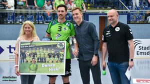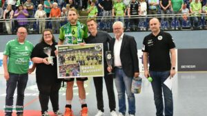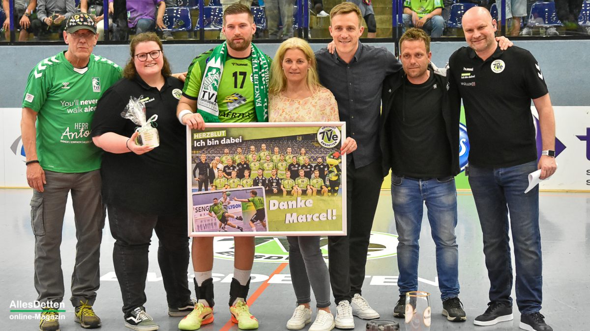 Nach Spielende wurden dann noch die Spieler offiziell verabschiedet, die den TVE nach Saisonabschluss definitiv verlassen werden: Nick de Kuyper (7 Spiele / 2 Tore), Mateusz Piechowski (16 Spiele / 9 Tore), Anton Runarsson (65 Spiele / 140 Tore), Lutz Weßeling (26 Spiele / 25 Tore), Ole Schramm (43 Spiele / 118 Tore), Gabor Langhans (11 Spiele 46 Tore – bleibt dem TVE als Trainer im Jugendbereich erhalten), Marcel Schliedermann.