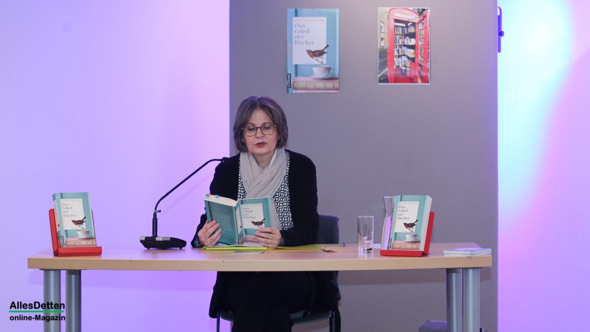 Gestern war es endlich soweit, die bereits für den 18. September 2025 anberaumte Autorenlesung in der Stadtbibliothek, welche aus gesundheitlichen Gründen abgesagt werden musste, hat endlich stattgefunden. Karin Joachim, die bereits neun Romane veröffentlicht hat, zumeist als Kriminalroman, stellte ihr neues Werk in der Stadtbibliothek in Emsdetten vor. Das Besondere daran: „Das Glück der Bücher“ hat lokalen Bezug. Seit nunmehr zwei Jahren lebt die Autorin mit ihrem Mann und ihrer Mutter in Emsdetten, hat 2020 zunächst unter den Begleiterscheinungen von Corona gelitten und dann kam die große Flutkatastrophe im Ahrtal, die Keller und Erdgeschoss ihres Eigenheims komplett unter Wasser stellte. Materiell wie ideell waren große Verluste zu verzeichnen, katastrophale Zustände, die sie zu einem Neubeginn veranlassten.