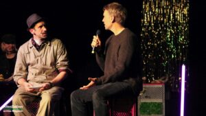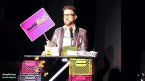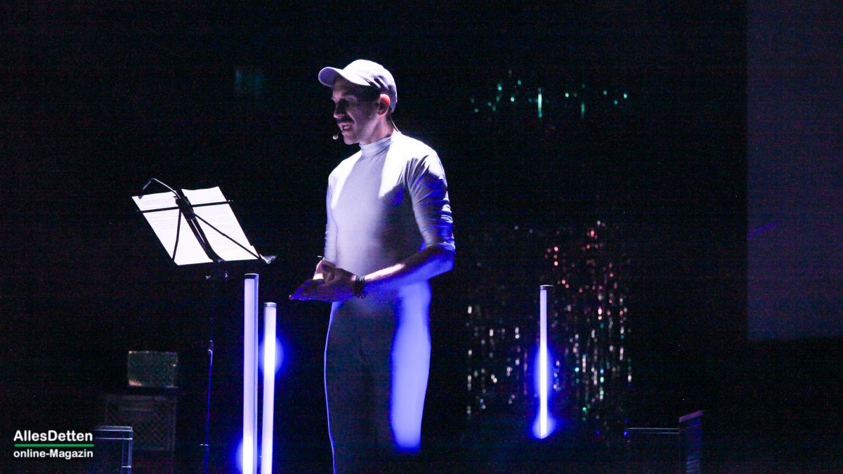 Aufgelockert wurde der Abend anfangs durch die BaddaNEWS!-Historical Edition, ein historisches Quiz rund um den Bürgersaal, der ja vom Ursprung her eine Textilfabrik war, die Umfragen, an denen sich das Publikum mit einer App beteiligen konnte, den Buchbesprechungen der Literaturkritikerin Mirjam Springer und der Tanzeinlage des Gehörlosen Dozi Doughan, der mit einer beeindruckenden Körperbeherrschung überzeugte, die Gäste anschließend mit einbezog und damit in die BaddaPAUSE! entließ.