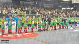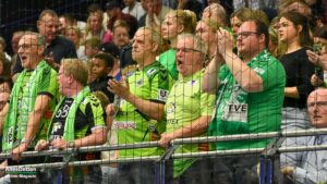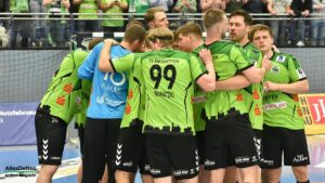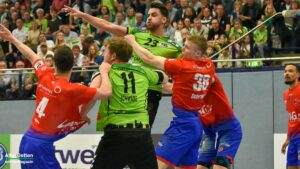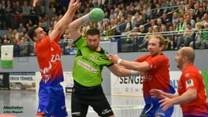Die Gäste haben große Klasse im Kader, das war vorher bekannt. Nach 47 Minuten gingen sie dann erstmals in Führung, bauten den Vorsprung wenig später sogar auf bis zu drei Treffer aus (19:22). Angetrieben von der unfassbaren Unterstützung von den Rängen und mit dem herausragenden Oliver Krechel im Tor kämpfte sich die Mannschaft von Trainer Sascha Bertow wieder heran. Jede gelungene Aktion wurde von der Halle gefeiert, jedes Tor bejubelt. Auf dem Spielfeld wurde wie auch auf den Rängen an die Wende geglaubt. Der Ausgleich durch Anton Runarsson kurz vor Schluss (24:24, 58:44 Minuten gespielt) war dann der Startschuss zu wilden letzten Sekunden.