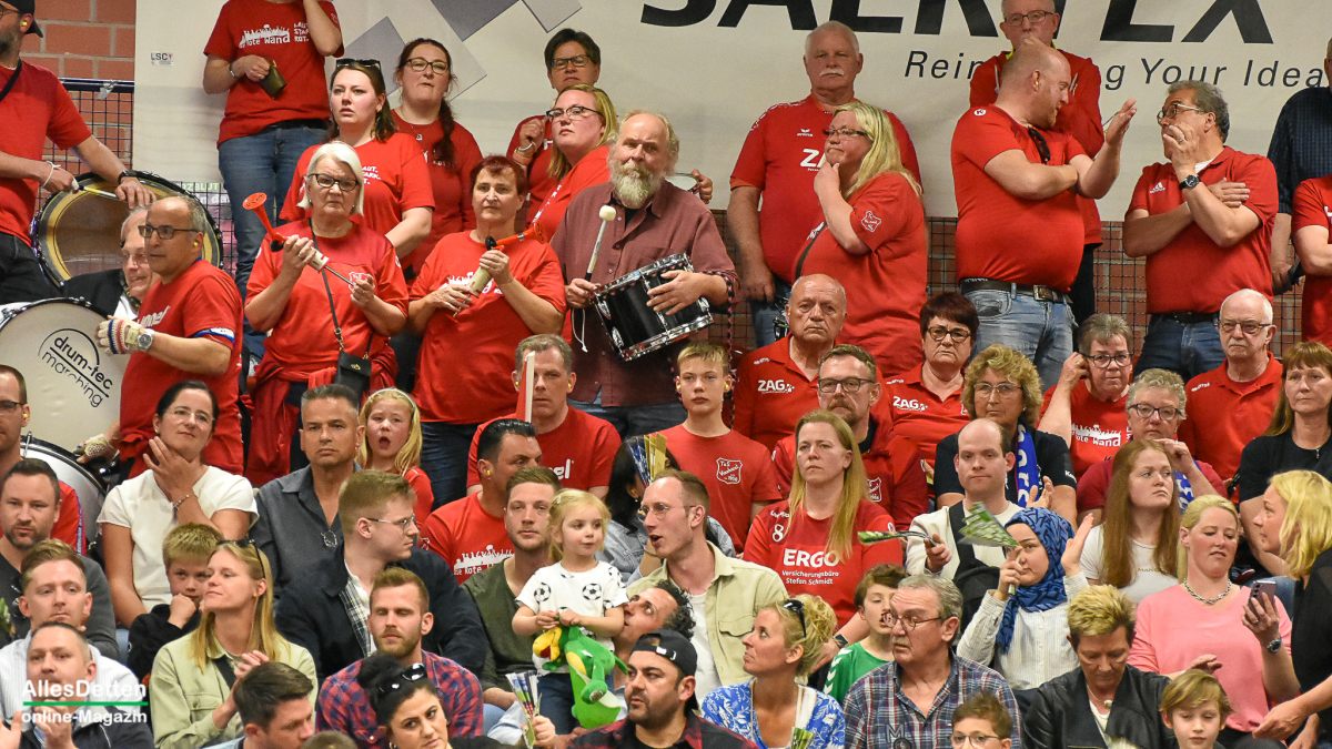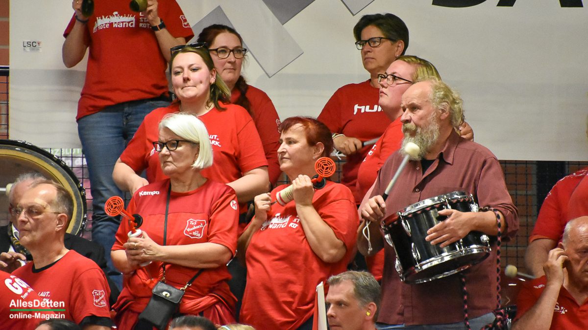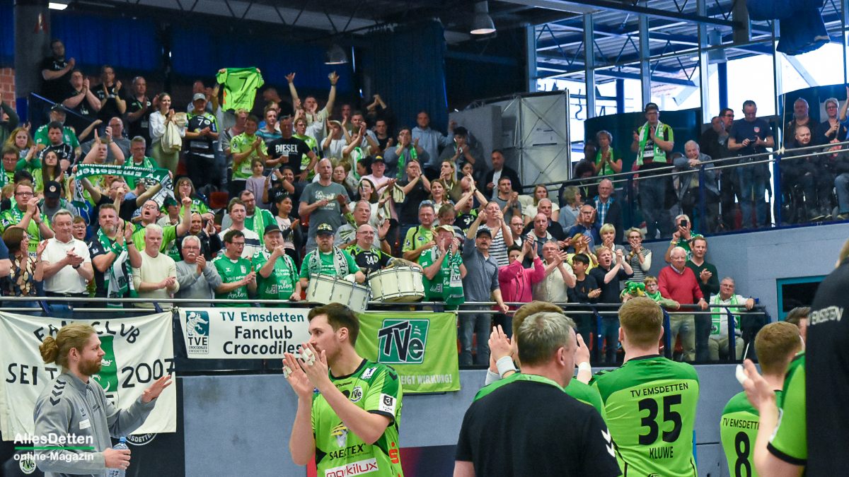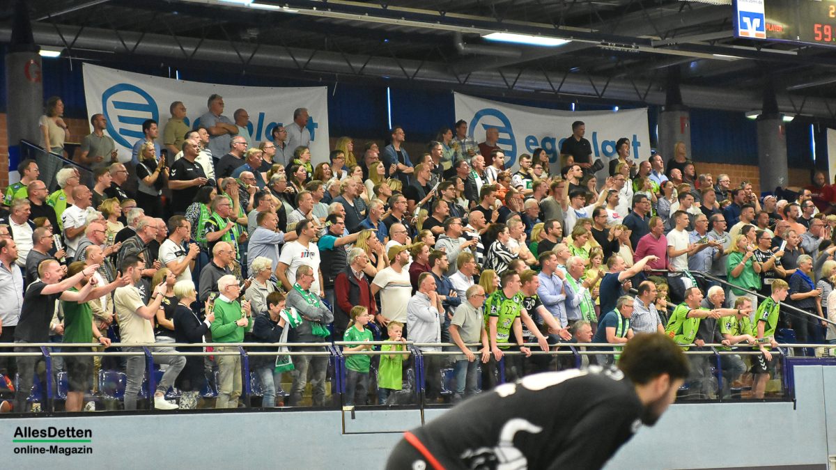 Kurz durchatmen – das Spiel war nichts für schwache Nerven oder Leute „mit Kreislauf“. Auch „wer Rücken hat“ dürfte es in der Ems Halle schwer gehabt haben. Denn so laut, so stimmungsvoll und so lange im Stehen wurde wohl selten ein Spiel in der EMS-Halle begleitet. Beide Teams wollten dem Feuer von den Rängen ein angemessenes Spiel bieten, kämpften um jeden Ball und jeden Zentimeter Hallenboden.