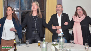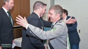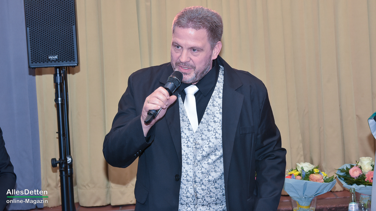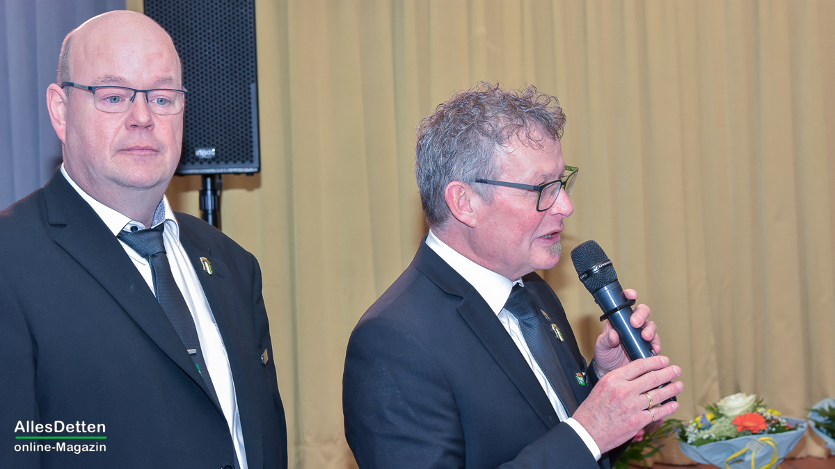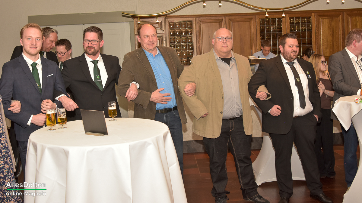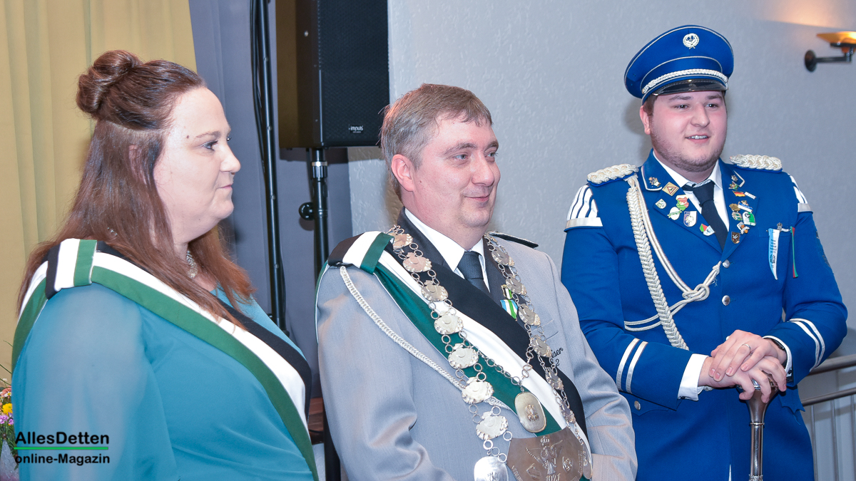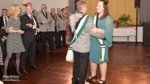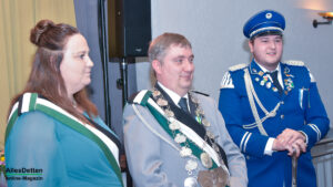Die Gästeliste des Abends, die Vereinigten-Vorsitzender Rainer Müllmann zuvor begrüßt hatte, schien fast unendlich lang zu sein. Da waren die ehemaligen Stadtkaiser und -kaiserinnen, der Spielmannszug der WEstumer Schützengesellschaft brachte ein Ständchen, die Stadt Emsdetten war vertreten durch die stellvertretende Bürgermeisterin Martina Rüschenschmidt, und erstem Beigeordneten Elmar Leuermann. Rüschenschmidt lies es sich nicht nehmen, Grußworte in Vertretung des Bürgermeisters auszubringen.Die Vertreter der politischen Parteien im Rat der Stadt Emsdetten, Familie und Freunde des Kaiserpaares waren dabei. Vertreter der Westumer Schützengesellschaft und des Bürgervereins Hembergen. Vertreter der Vereinigten Schützengesellschaften Greven, unter anderem der Grevener Stadtkaiser, der ebenfalls einige Grußworte an die anwesenden Schützenbrüder und -schwestern richtete. Die KGE hat eine Abordnung geschickt, der Vorstand der Vereinigten Schützengesellschaften. Der Festausschuss des bevorstehenden Bundesfestes und nicht zuletzt AllesDetten sowie Vertreter weiterer Emsdettener Medien.