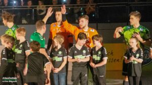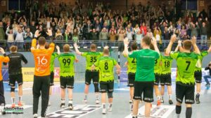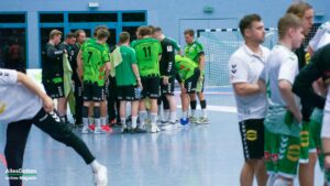 Was jetzt folgte ist eine Geschichte, die ist so schön, die schreibt nur der Sport: Vor der Partie war klar, dass Oliver Krechel dem TVE nicht zur Verfügung stehen konnte. Die Leiste zwickt. Mit nur einem Torhüter ins Spiel zu gehen ist riskant. Lasse Schroer, Torhüter der zweiten Mannschaft des TV Emsdetten und somit normalerweise in der Landesliga unterwegs, vertrat ihn. In der Schlussphase der Partie gab Trainer Sascha Bertow seinem Ersatzmann das Vertrauen und ermöglichte ihm sein Debut in Liga drei. Der hielt gleich einen Ball und wurde von der Halle gefeiert. Außerdem leitete er einen Torerfolg von Paul Kolk ein: Den langen Ball, gespielt über das gesamte Spielfeld, brachte Kolk sicher im Tor unter. Die Halle jubelte, und Lasse Schroer freute sich über die gelungene Aktion. Nach Spielschluss waren er und seine Kollegen zufrieden. Durften sie auch: Denn die zweite Halbzeit war klasse, der 36:22 Sieg verdient.