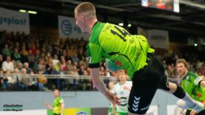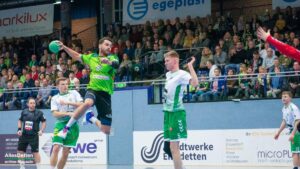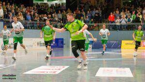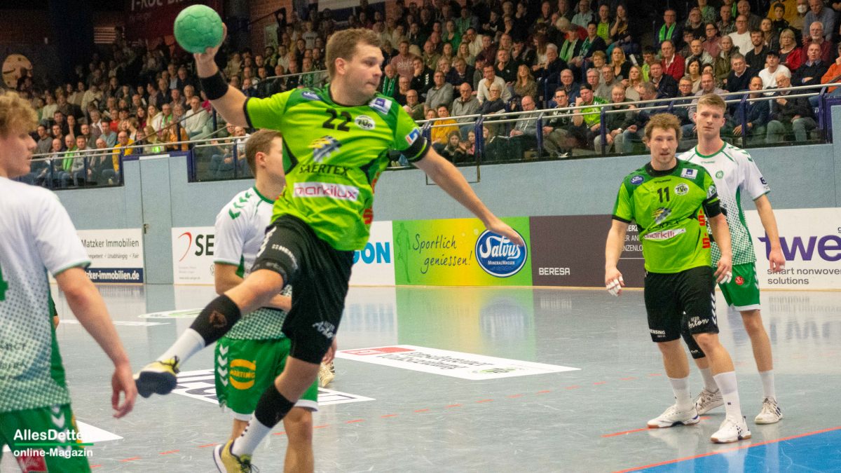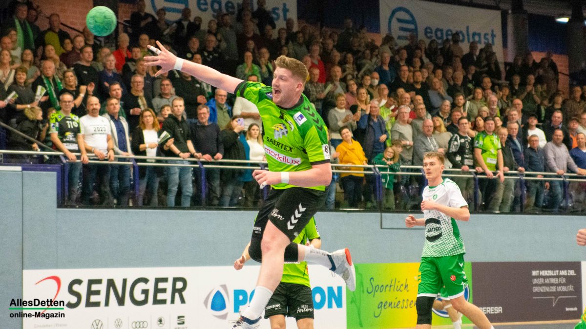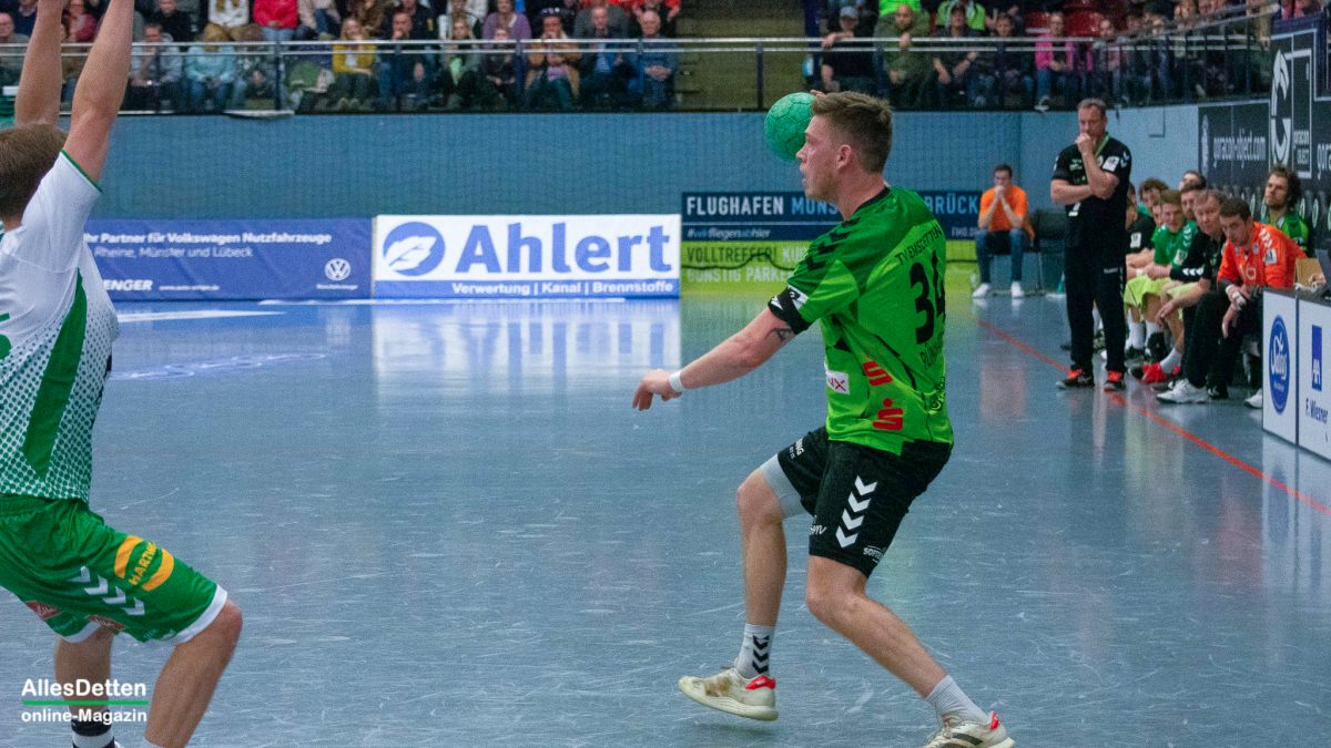 In Durchgang zwei bekamen die Zuschauer dann viele Wechsel auf Emsdettener Seite geboten. Insbesondere die Hereinnahme von Paul Kolk sollte sich auszahlen. Mit sieben Toren war er bester TVE Torschütze. Nicht nur vor dem gegnerischen Kasten war Kolk unverzichtbar: Er spielte in der Abwehr nun mit Jakob Schwabe und Robin Jansen. Und der Niederländer Jansen machte im zweiten Durchgang eine außerordentlich gute Partie. Er bekam den Mindener Rückraum immer besser in den Griff, störte früh die Angriffsbemühungen und stellte Gästespieler Hermeling immer wieder klug zu. Minden reagierte, wechselte Hermeling aus und versuchte auf andere Weise zum Torerfolg zu kommen. Das klappte gar nicht: Die Dettener Deckung eroberte sich die Bälle, leitete Tempogegenstöße ein und kam nun richtig in Fahrt. Aus einem 20:18 in Minute 43 wurde innerhalb kürzester Zeit ein 24:18 (48. Minute). Das war erst der Auftakt! Zehn Treffer Differenz waren es schon vier Minuten später (29:19). Der herein gekommene Max Nowatzki machte ein gutes Spiel, Marcel Schliedermann zeigte, dass er im Rückraum eine echte Alternative zum Isländer Anton Runarsson sein kann. Er machte nach seiner Einwechslung noch zwei eigene Tore.
