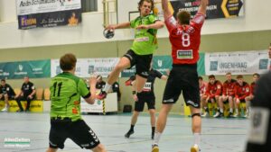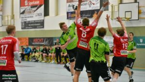 Und so nahm Sascha Bertow schon früh seine erste Auszeit, stellte ein wenig um und brachte früh in der Partie Maximilian Nowatzki für den erneut blassen Tobias Reichmann. Der Ausgleich zum 9:9 erfolgte nur wenig später. Der Name „Team Handball“ passte hervorragend zur Mannschaft der Gastgeber. Niemand stich groß hervor, keiner riss das Spiel an sich oder drückte ihm seinen Stempel auf. Hier wurde alles im Kollektiv gelöst. Die junge Mannschaft hielt bis zur Pause gut mit, musste sich gegen immer besser auftretende Emsdettener dann aber doch noch mit einem vier Tore Rückstand zur Halbzeit (17:13 für den TVE) zufrieden geben. Das lag daran, dass die eingewechselten Emsdettener alle sofort zündeten. Marcel Schliedermann machte eine gute Partie, zeigte sich wie schon gegen Minden spielfreudig und stark in eins-gegen-eins Duellen.