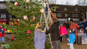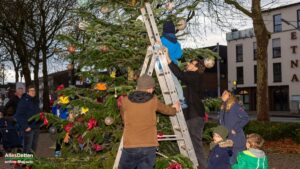 Alle Jahre wieder wird in Reckenfeld zur Adventszeit „Die Baum“ aufgestellt und geschmückt. Immer wieder eine gern angenommene Gelegenheit für viele Reckenfelder um sich zu treffen. Bei einem Glühwein oder heißen Kakao wird dann mit reichlich, vielfach auch selbst gebasteltem Schmuck „die Baum“ dekoriert.