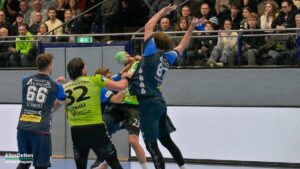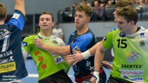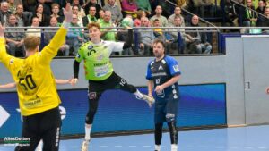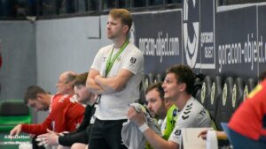 Am Ende 32:26 gewonnen, das Soll erfüllt, die Mannschaft um Trainer Lennart Lingener weist den Sparingspartner der Ahlener SG beim Derby am Ende souverän in die Schranken. Danach hat es allerdings in der ersten Halbzeit bei weitem nicht ausgesehen. Irgendwie war bei beiden Teams der Wurm drin, auch die 1.947 Zuschauer wollten nicht so recht wach werden. Viele technische Fehler, Pässe die ins Leere gingen oder einfach nicht gefangen wurden, insgesamt elf Zeitstrafen, eine rote Karte gegen Ahlen, viele Spielunterbrechungen. Keine Werbung für den Handball. Erschwerend hinzu kam ein Ahlener Torhüter, der gehalten hat als gäbe es kein Morgen mehr, – bärenstark!