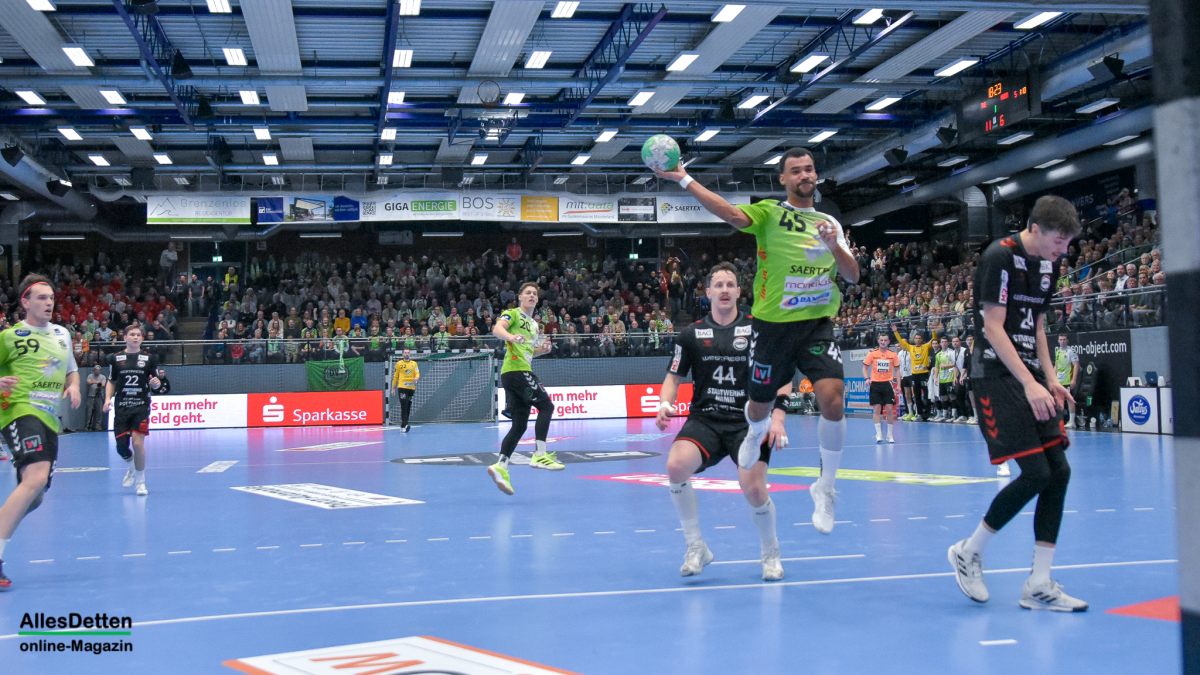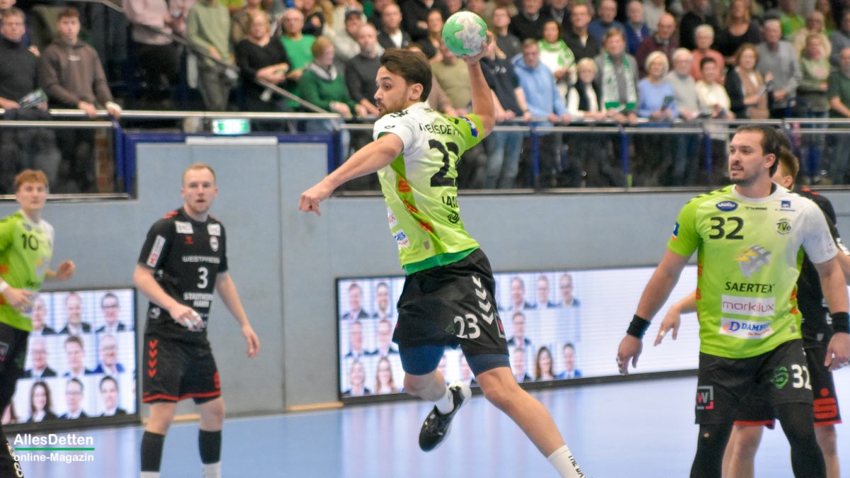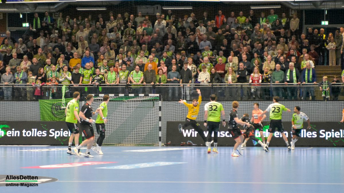 Was für eine Stimmung! Was für ein Kampf von zwei richtig guten Mannschaften! Und was für eine Serie, die der TV Emsdetten da ausbaut: Nach dem 34:32 Heimsieg im Derby gegen den ASV Hamm grüßt unsere Herzblut Truppe weiter von der Tabellenspitze. Mit nun unglaublichen 30:0 Punkten. Damit sind sie nun das einzige Team aller Staffeln der dritten Liga das immer noch ungeschlagen ist.