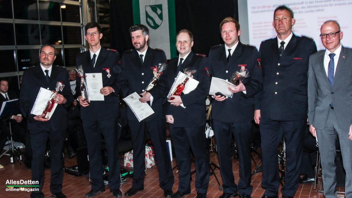 Für 25-jährigen aktiven Dienst in der Feuerwehr Ensdetten wurden mit dem Feuerwehrehrenzeichen in Silber des Ministeriums für Inneres und Kommunales des Landes NRW geehrt (die Reihenfolge auf den Bilder ist möglicherweise jeweils eine andere):Benedikt Remmes, Bernd Wermers, Guido Heitmeier, Hendrik Pleimann, Nils Winter