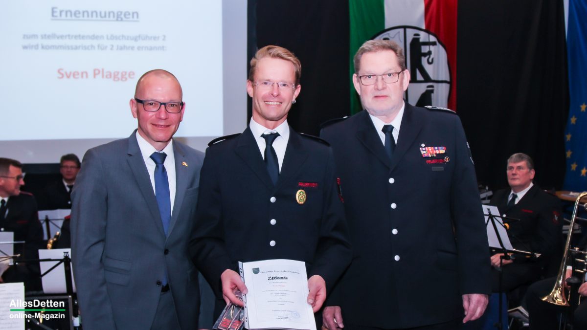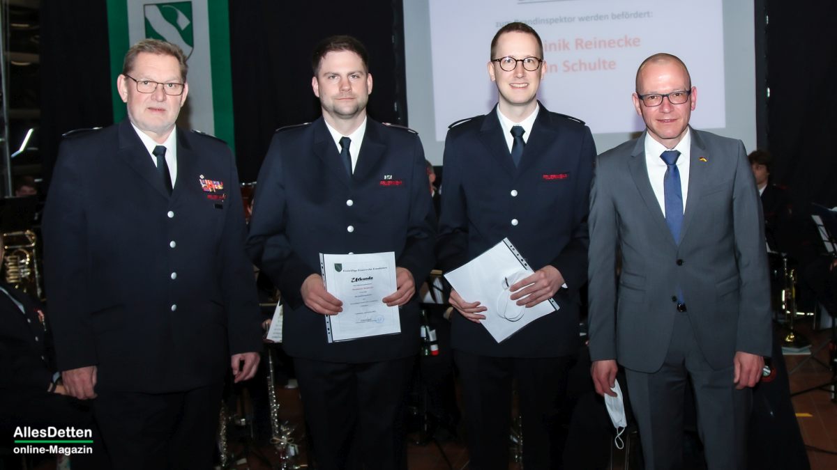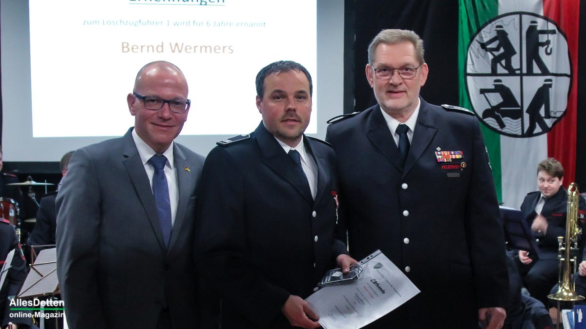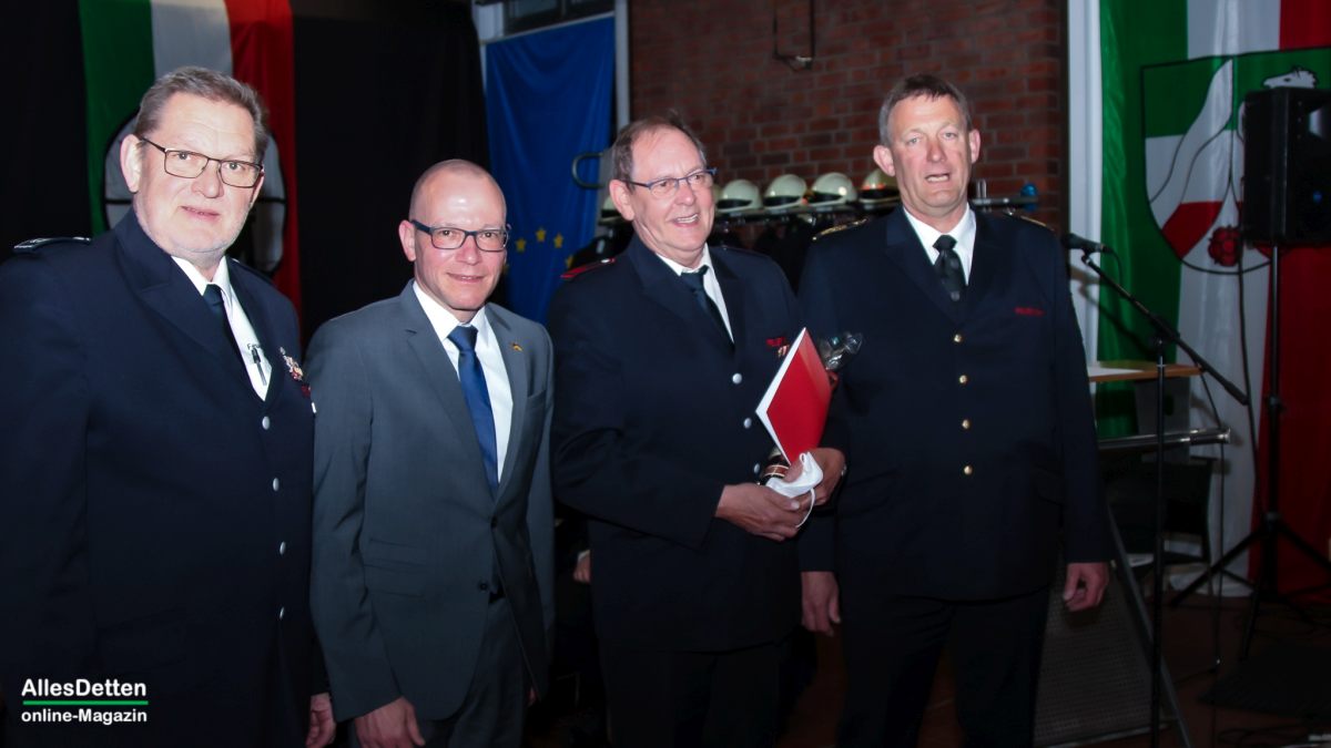 Die weiteren Ehrungen und Beförderungen nahmen stellvertretender Kreisbrandmeister Stefan Steineweg, Leiter der Emsdettener Feuerwehr Willi Kemper, sein Stellvertreter Ralf Albers und Bürgermeister Oliver Kellner vor.