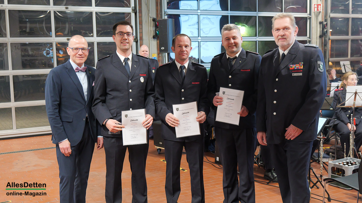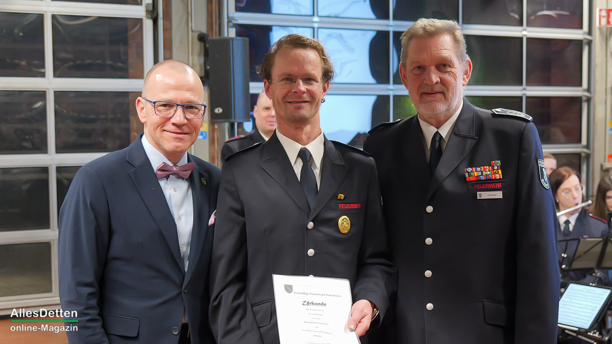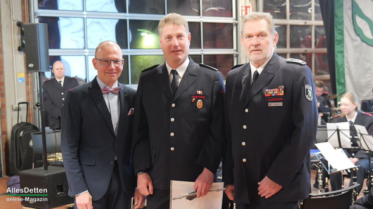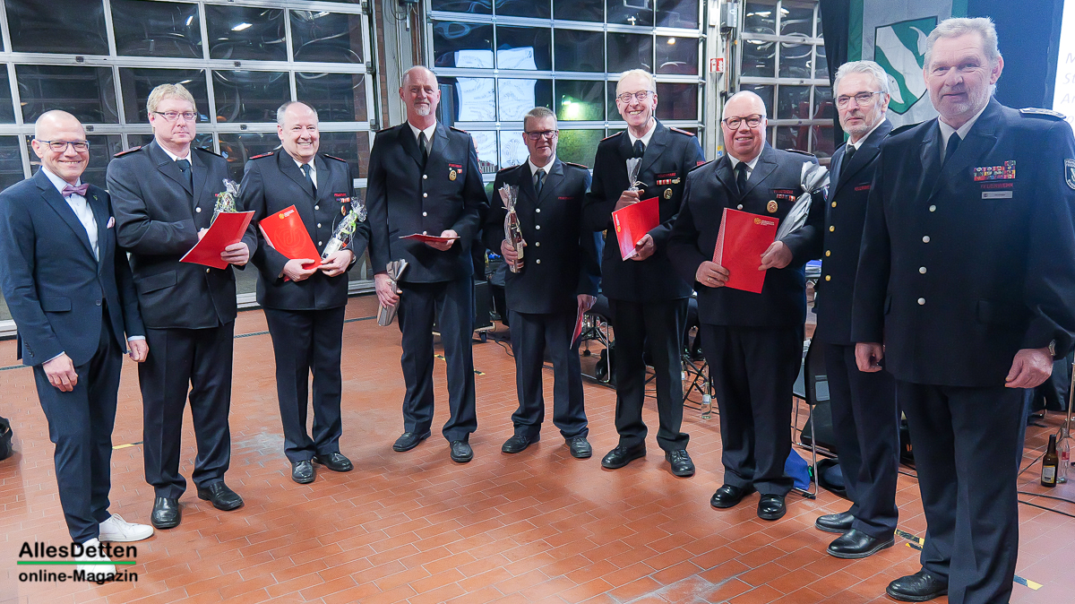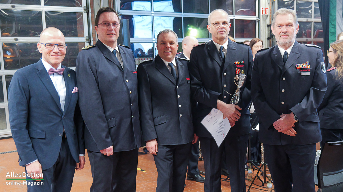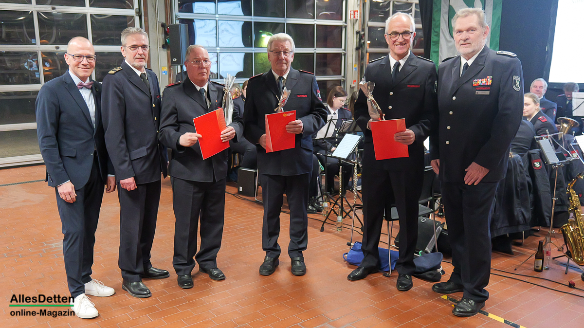 Vorgenommen wurden die Ehrungen jeweils von der Emsdettener Wehrführung, Willi Kemper, Ralf Albers und Bernd Wermers, dem Bürgermeister Oliver Kellner sowie dem stellvertretenden Kreis- und auch stellvertretenden Bezirksbrandmeister Frank Burrichter.