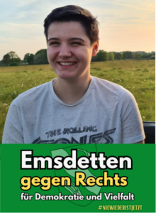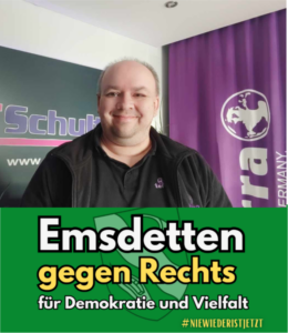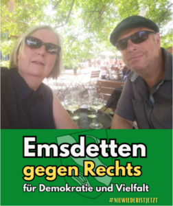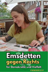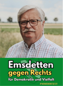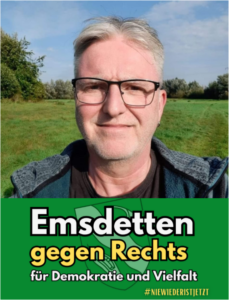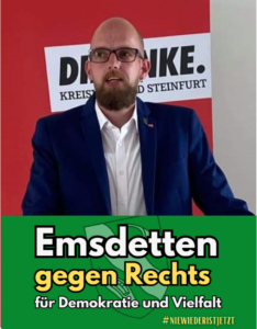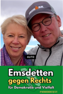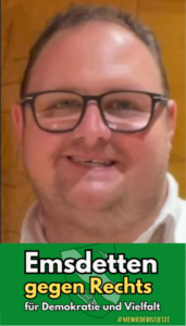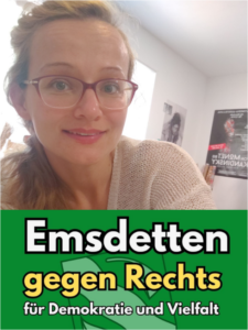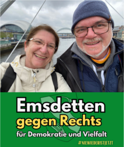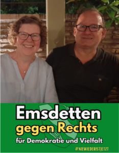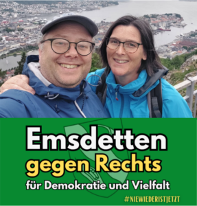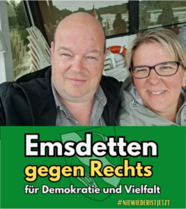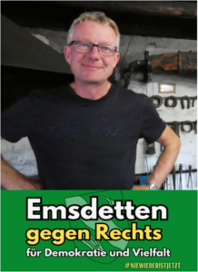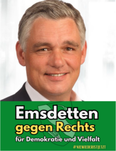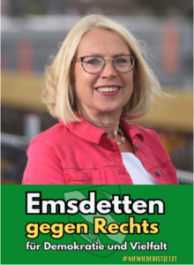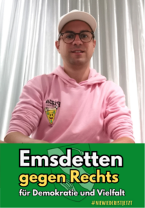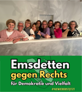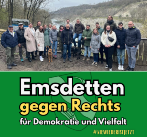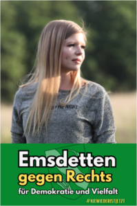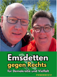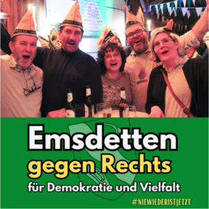 Das Aktionsbündnis, dem alle Emsdettener Parteien beigetreten sind, hat sich auf Initiative der Emsdettener Grünen gegründet. Die Vertreter der Moschee-Vereine, der Kirchen in Emsdetten und weitere Akteure sowie Vereine in Emsdetten haben ihre Unterstützung zugesagt. Alle Beteiligten freuen sich auf eine zahlreiche, bunte und lautstarke Unterstützung. „Weitere Mit-Akteure sind gern gesehen.“, heißt es abschließend in der Pressemitteilung.