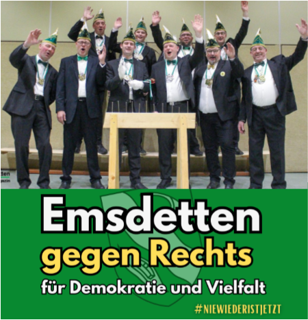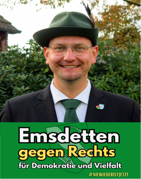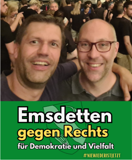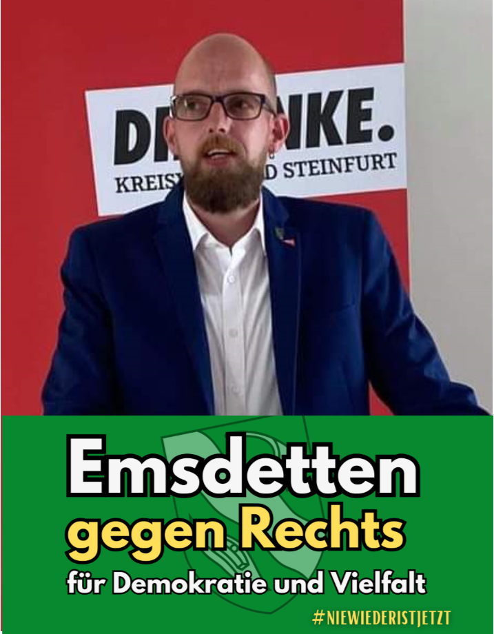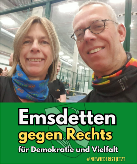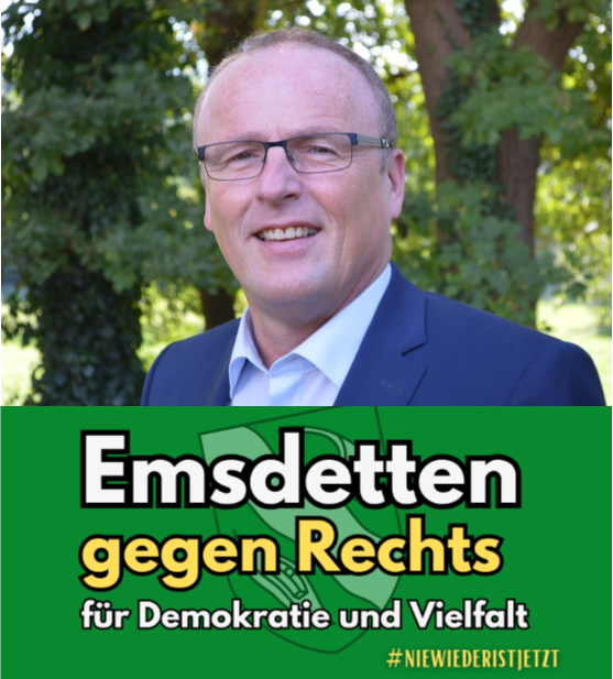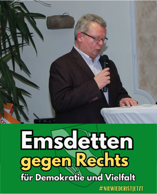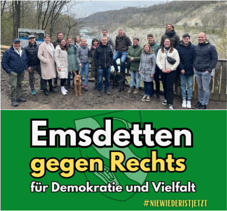 Das Aktionsbündnis, dem alle Emsdettener Parteien beigetreten sind, hat sich auf Initiative der Emsdettener Grünen gegründet. Die Vertreter der Moschee-Vereine, der Kirchen in Emsdetten und weitere Akteure sowie Vereine in Emsdetten haben ihre Unterstützung zugesagt. Alle Beteiligten freuen sich auf eine zahlreiche, bunte und lautstarke Unterstützung. „Weitere Mit-Akteure sind gern gesehen.“, heißt es abschließend in der Pressemitteilung.