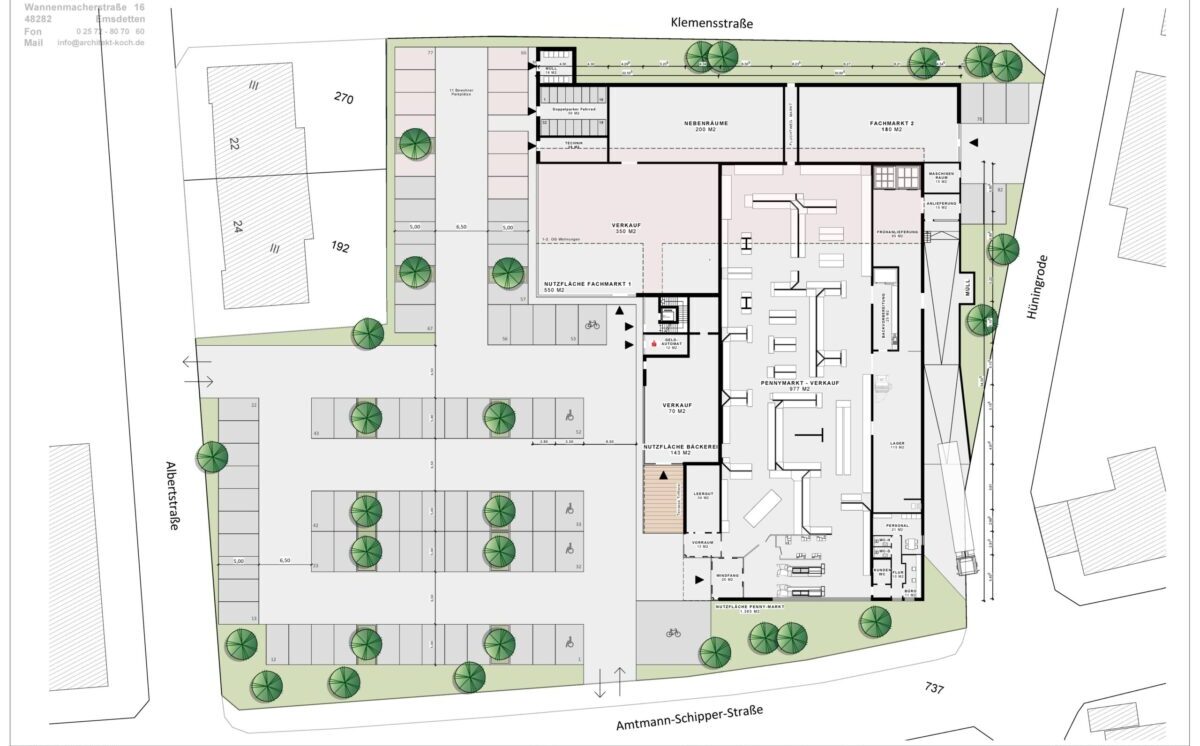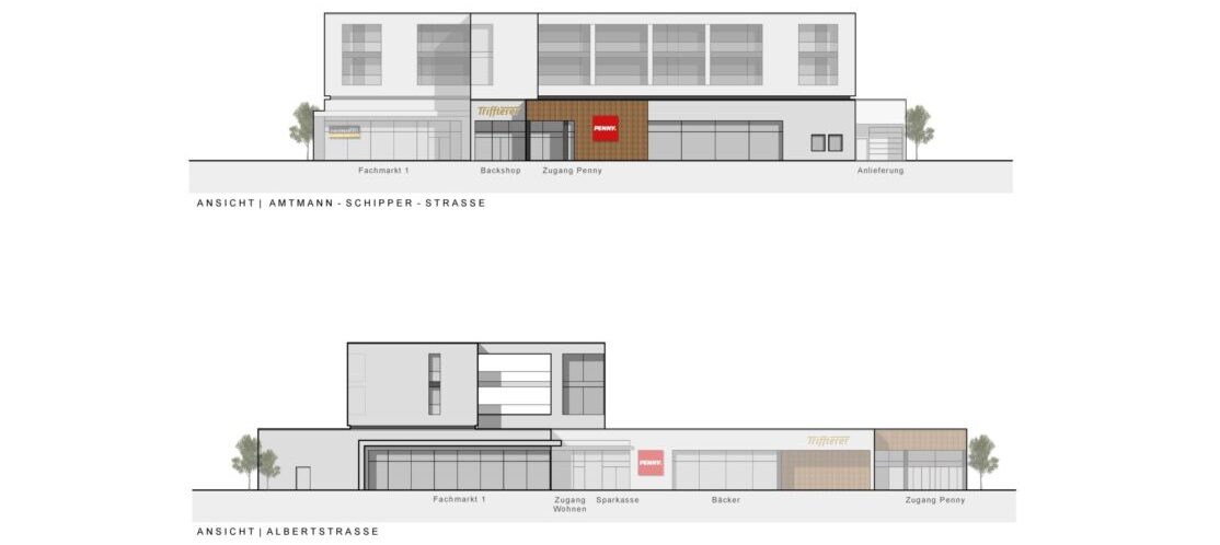 • Es gibt keinen zusätzlichen, sondern der vorhandene Pennymarkt soll abgerissen werden, dafür entsteht an gleicher Stelle ein neuer Penny, 2 Fachmärkte und Wohnungen.