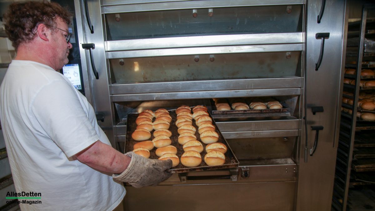 Völker ist die letzte Backstube in Emsdetten, in der noch vor Ort von Hand gebacken wird. „Alle anderen existieren nicht mehr oder lassen sich beliefern.“, trauert der Bäckermeister, der in diesem Jahr stolz seinen silbernen Meisterbrief entgegennehmen konnte, der guten alten Zeit ein wenig nach. „In den 1970-er Jahren hatten wir in Emsdetten noch 38 Backstuben.“ Tim Völker hat noch bei Claus Wessels gelernt. Dann zählt er im Gespräch mit AllesDetten die Backstuben auf, die hier noch selbst produzierten, als er 2000 erfolgreich die Prüfung zum Bäckermeister abgelegt hat: Schülter, Wessels, Becker, Mersmann, Fellmann, Reinermann, Renkert, Quibeldey, Osterbrink.