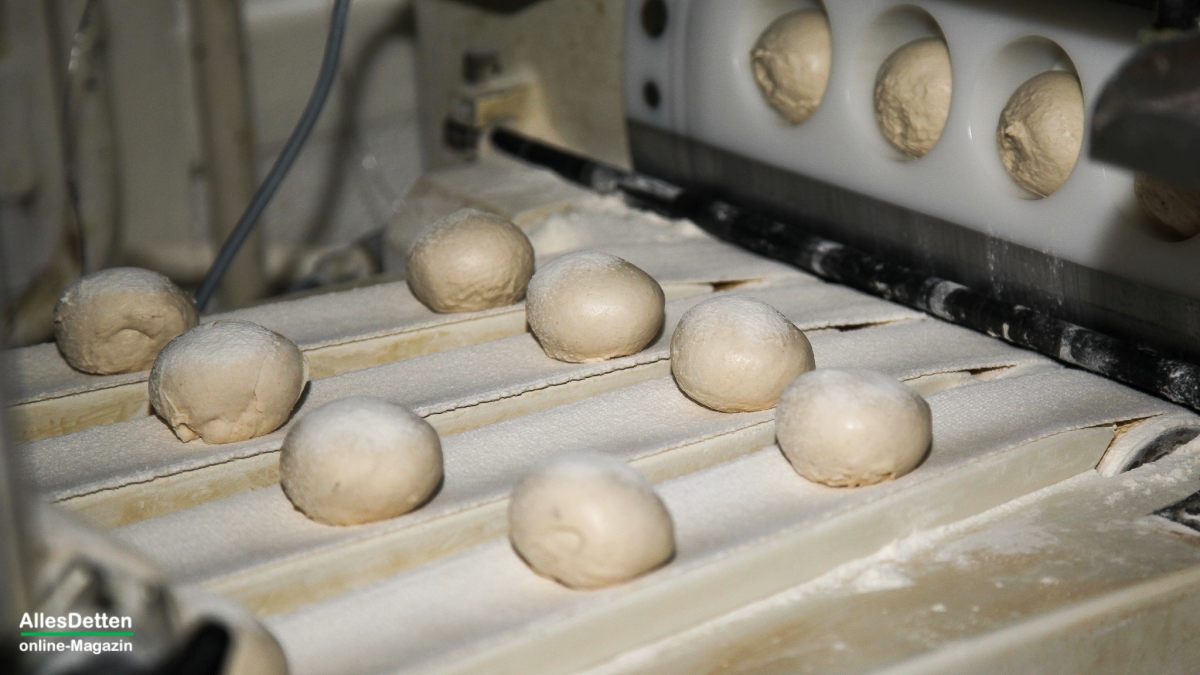 Während die Teiglinge für die „normalen“ Brötchen maschinell geformt werden, dann für 24 Stunden in die Reifekammer geschoben werden, werden die Eigenkreationen wie Schwedenbrötchen, Wikinger, Mixies, Tiger oder Römer, Fitneß-Brötchen… allesamt von Hand in Form gebracht. „Jeder Bäcker hat da seine eigenen Rezepturen.“, verrät uns Völker, der die Zusammensetzung der 38 verschiedenen Brötchensorten, die er in dem Umfang jedoch nur am Wochenende im Angebot hat, selbst entwickelt und ausprobiert hat.