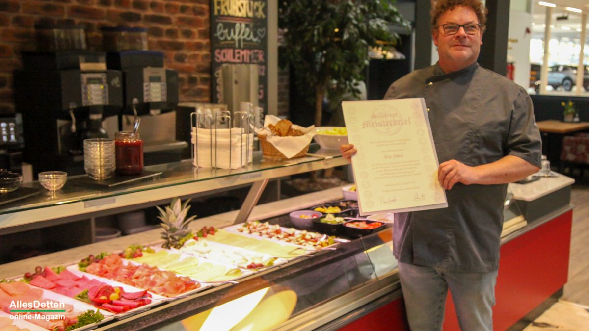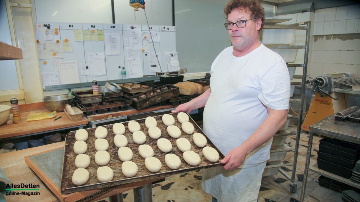 Völker ist die letzte Backstube in Emsdetten, in der noch vor Ort von Hand gebacken wird. „Alle anderen existieren nicht mehr oder lassen sich beliefern.“, trauert der Bäckermeister, der in diesem Jahr stolz seinen silbernen Meisterbrief entgegennehmen konnte, der guten alten Zeit ein wenig nach. „In den 1970-er Jahren hatten wir in Emsdetten noch 38 Backstuben.“ Tim Völker hat noch bei Claus Wessels gelernt. Dann zählt er im Gespräch mit AllesDetten die Backstuben auf, die hier noch selbst produzierten, als er 2000 erfolgreich die Prüfung zum Bäckermeister abgelegt hat: Schülter, Wessels, Becker, Mersmann, Fellmann, Reinermann, Renkert, Quibeldey, Osterbrink.