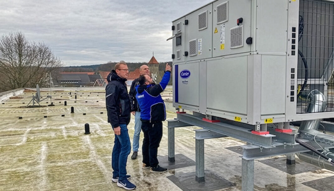 Der Kreis Steinfurt hat sich das Ziel gesetzt, bis zum Jahr 2040 klimaneutral zu werden. Um dieses Ziel zu erreichen, müssen beispielsweise Anlagen zur Erzeugung, Speicherung und Verteilung erneuerbarer Energien errichtet, betrieben und unterhalten werden. Das Amt für Gebäudewirtschaft des Kreises Steinfurt hat jetzt auf dem Dach der Janusz-Korczak-Schule in Ibbenbüren-Uffeln eine Wärmepumpe errichten lassen, die kurz nach Beendigung der Herbstferien die Funktion der alten und ausgemusterten Gas-Brennwerttherme übernommen hat. Die Förderschule mit ihren rund 125 Schülerinnen und Schülern am Standort in Ibbenbüren-Uffeln ist die erste Bildungseinrichtung des Kreises Steinfurt, die mit einer Wärmepumpe ausgerüstet worden ist.