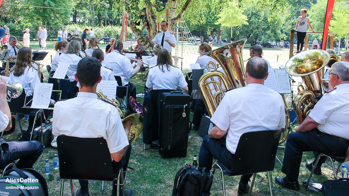 Schon zur guten Tradition ist das Konzert des Musikzuges der Freiwilligen Feuerwehr Emsdetten am Nachmittag des Fronleichnamstage im Stadtpark an der Blumenstraße geworden.