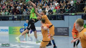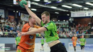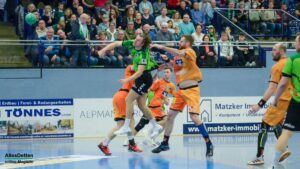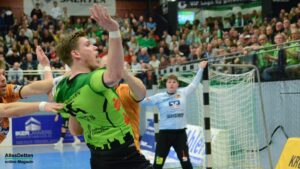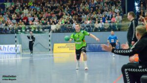 Denn die Gäste hielten toll mit, boten dem TVE einen richtigen Kampf und lagen zu Beginn der Partie auch in Führung. Die hielt bis zur zehnten Spielminute. Anton Runarsson erzielte hier den 7:7 Ausgleich für den TVE. Angetrieben von Runarsson und mit einem langsam warm laufenden Oliver Krechel im Tor setzte sich der TV Emsdetten jetzt leicht ab. Die 21:16 Pausenführung war verdient. Eventuell um ein zwei Tore zu hoch, denn die Gäste lieferten wirklich einen tollen Kampf, zeigten sich voll motiviert und erspielten sich kreativ ihre Torchancen. Auch ein Tor per Dreher oder Heber durfte da nicht fehlen. Man merkte, dass die Truppe toll eingespielt ist und sich blind versteht.