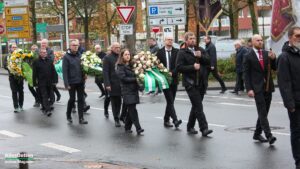 Traditionell wurden nach einem Schweigemarsch zum Kriegerehrenmal an der Nordwalder Straße durch die Stadt Emsdetten, durch den Bezirksverband der Kleingärtner, durch Emsdettener Vereine und den Emsdettener Heimatbund vier Kränze aufgestellt. Sie werden in den nächsten Tagen noch dazu auffordern an dieser Stelle einen kurzen Moment inne zu halten.