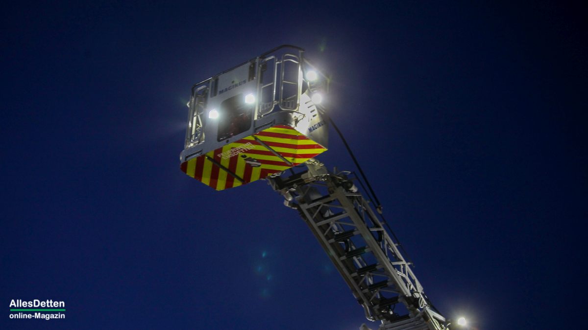 Die Drehleiter kam zum Einsatz, um das Dach zu öffnen und dadurch eine Möglichkeit zu schaffen, dass der Rauch abzieht.