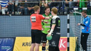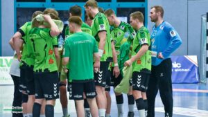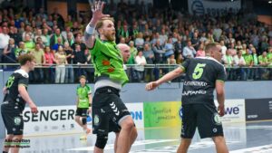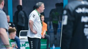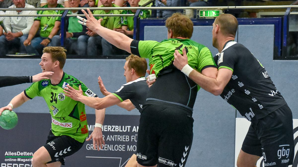 Der TVE ging zwar sofort in Führung und konnte diese auf fünf Treffer ausbauen (10:5, 11. Minute), Hildesheim aber hielt voll dagegen. Mit ex-TVE-Torwart Konstantin Madert im Tor kämpften sich die Niedersachen wieder an die Emsdettener heran. Gästetrainer Daniel Deutsch nahm schon nach sieben Minuten die erste Auszeit, griff so in die gute erste Spielphase des TVE ein. Das Team von Sascha Bertow machte jetzt einige Fehler, oft fehlten nur Zentimeter zum Glück.