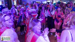 Im Schlepptau hatte sie 17 weitere Barbies, allesamt im zarten rosa, – allesamt ohne Ken. Die HardRock-Barbie, die Aerobic-Barbie, die Western-Barbie, die Meerjungfrau-Barbie, die Garten-Barbie, Matrosen-Barbie, TaekWonDo-Barbie, Superhelden-Barbie, Salat-Barbie, Safari-Barbie, Maripos-Barbie… Ein reiner Mädelselferrat und das lockte zahlreiche Gäste in den Saal Wältermann. Als später der Stadtelferrat seine Aufwartung machte, da wurde es dann doch eng. Und die Stimmung war mal so richtig g…ut!