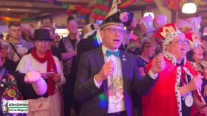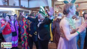 Kaum, dass sie sich in Hollingen wohlfühlten, rief der KGE-Fahrplan sie auf, wieder in den Bus zu steigen um bei der Westumer Einigkeit dem Prinzenpaar Jonas Hilbert und Zoe Beike zu gratulieren. prinz_tobias