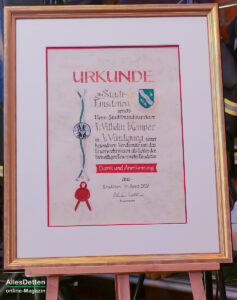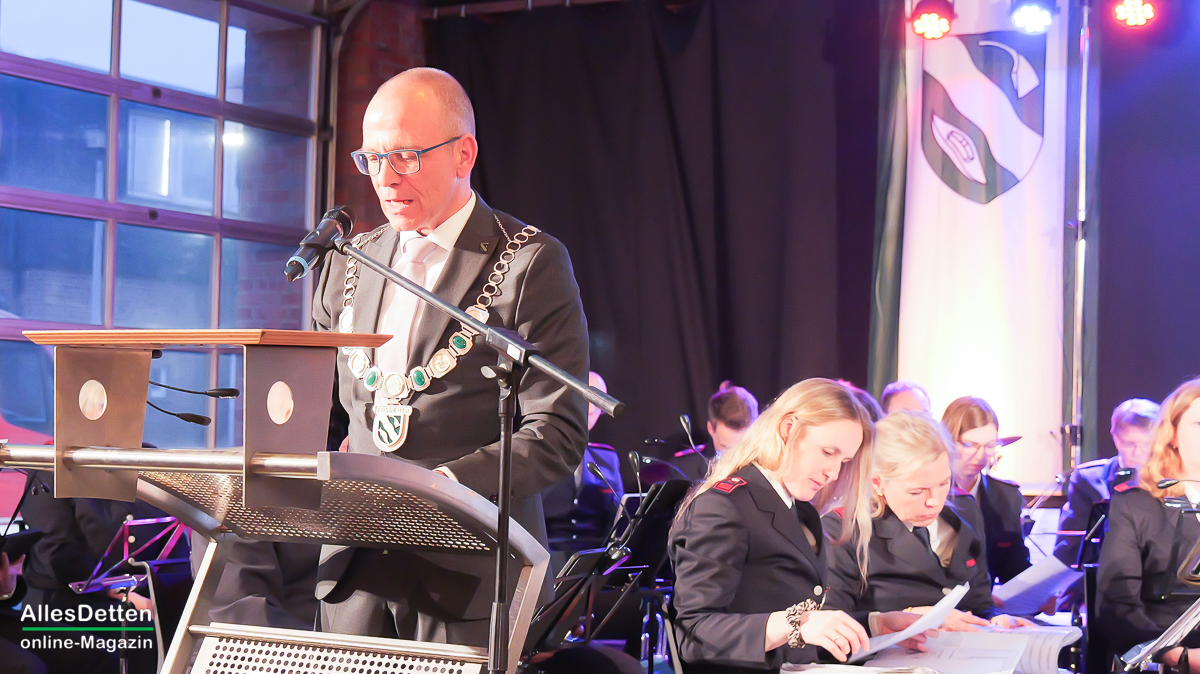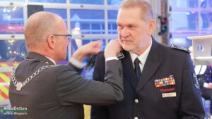Bevor Bürgermeister Oliver Kellner Willi Kemper aus dem des Wehrführers Amt entließ, was äußerlich durch übergabe einer Urkunde sowie dem Austausch der Schulterklappen geschah, bedankte und würdigte Kellner das über fast fünf Jahrzehnte währende Wirken von Willi Kemper im selbstlosen Einsatz für das Allgemeinwohl. 32 Jahre davon war Willi Kemper im Führungsdienst zunächst als Stellvertreter von Dieter Rengers und in den letzten 13 Jahren selber als Leiter im Einsatz. Ohne der Laudatio vorweg greifen zu wollen, hob Kellner besonders das Engagement beim Aufbau und der Unterhaltung des Corona-Testzentrums gegenüber der Feuerwache hervor, nannte den Ukraine-Hilfstransport und besonders auch die Einsätze beim Ems-Hochwasser im Winter 2022/23.