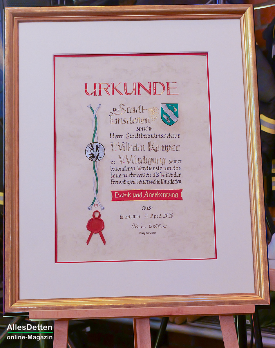 „Das Ansehen der Freiwilligen Feuerwehr Emsdetten und ihre Anziehungskraft für junge Männer und Frauen waren Garant dafür, dass wir in Emsdetten über mangelnde Mitgliederzahlen nicht klagen müssen.“ so Rengers und Moenikes in ihren Ausführungen. Von 1994 bis 2026 ist die Zahl der Kameradinnen und Kameraden in Emsdetten von 205 auf 325 gestiegen. „Die Emsdettener Wehr ist damit in NRW ganz weit oben.“