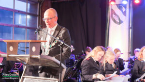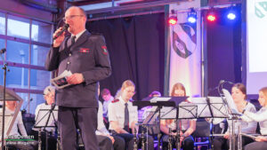 Etwa 400 Gäste waren zur offiziellen Feierstunde im Anschluss an den Großen Zapfenstreich eingeladen, etwa 400 Gäste waren auch anwesend. Weggefährten von Willi Kemper während seiner fast 50-jährigen Feuerwehrlaufbahn. Offizielle Gäste, private Freunde, Familie. Locker moderiert von Elmar Leuermann, musikalisch untermauert zunächst von der Jugendgruppe des Musikzuges und dann immer wieder vom Musikzug der Freiwilligen Feuerwehr Emsdetten selber. Dieser glänzte unter anderem mit dem Abba-Medley oder dem Potpourri aus vielen Filmmusik-Klassikern. – Aber darum ging es an diesem Abend nicht.