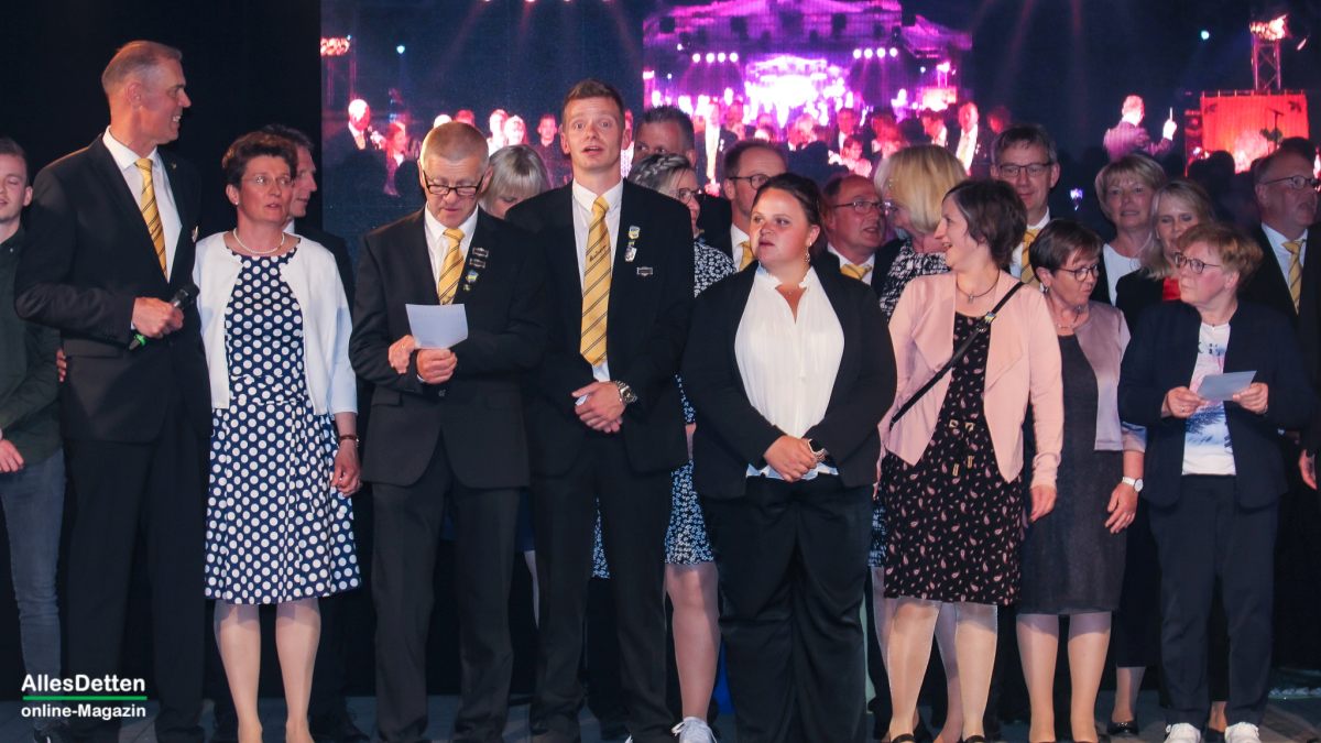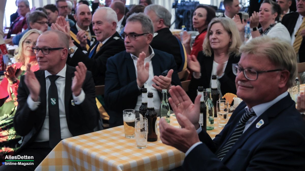 Als besonderes Bonbon – denn bei all dem Feiern wollte man auch etwas Gutes tun, gingen die Damen des Festausschusses mit Spendendosen durch die Tischreihen, sammelten insgesamt 3.497,55 € die dann vom Verein, wie auch einer großzügigen Spende des Schirmherrn auf 6.500,– € aufgestockt wurden. Dieses Geld geht nun auf das Konto der Stadt Emsdetten für die Ukraine-Hilfe in der polnischen Partnerstadt Chojnice.