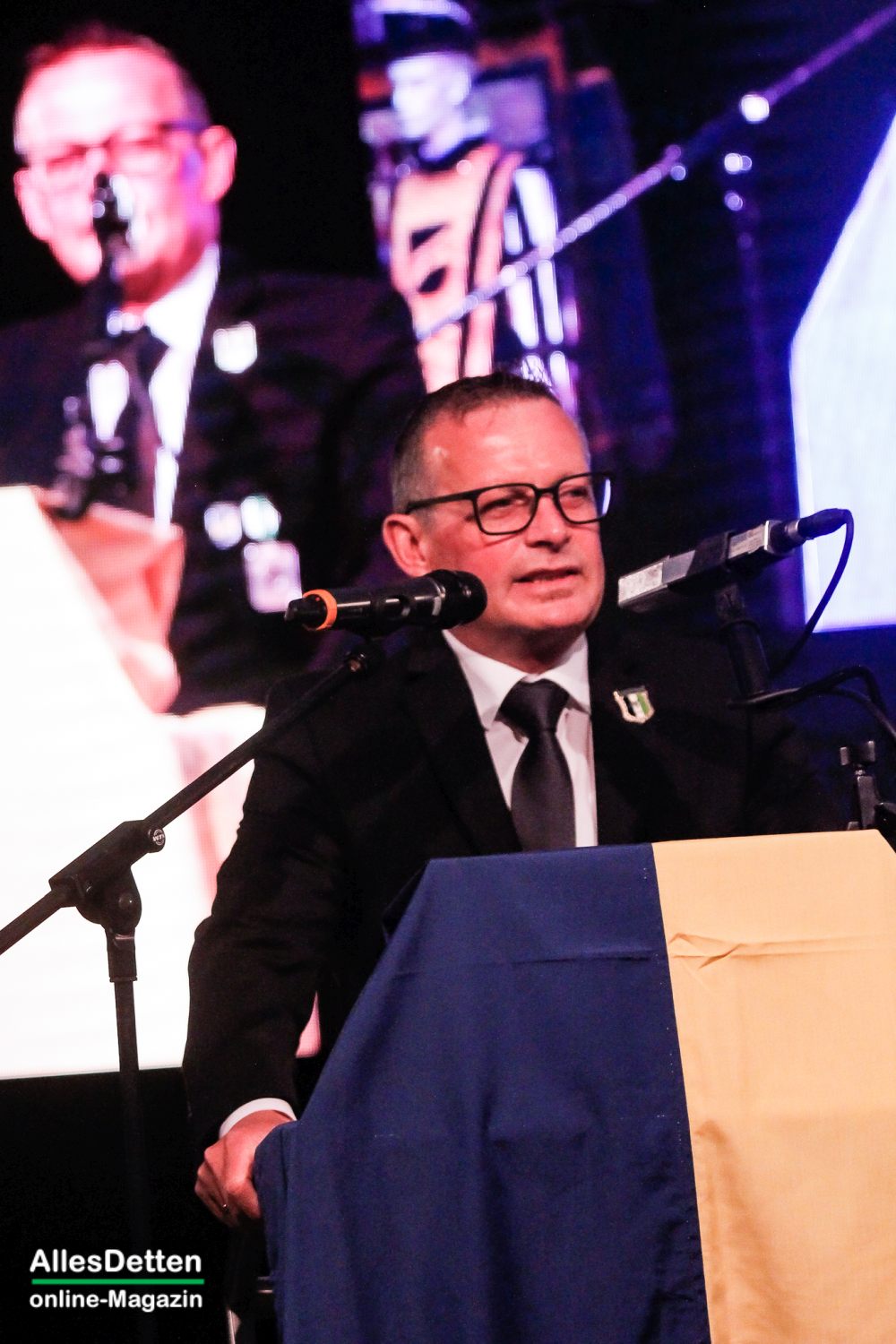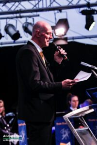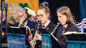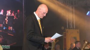 Die eigentliche Moderation des Abends haben dann Rike und Julius übernommen, sie begrüßten erfrischend locker die anwesenden Gastvereine indem sie sie einzeln vorstellten. „Hämmerten“ dem Publikum das Programm der beiden folgenden Tage ein und erwähnten gefühlt 400 Mal, dass die Mesumer Feuerwehr, die jetzt seit 88 Jahren beim Austumer Schützenfest spielt, doch eigentlich der Musikzug der Freiwilligen Feuerwehr Rheine Löschzug Mesum ist.