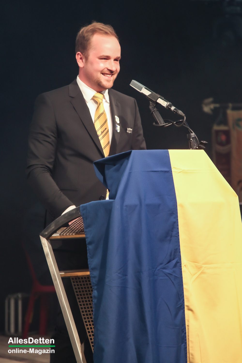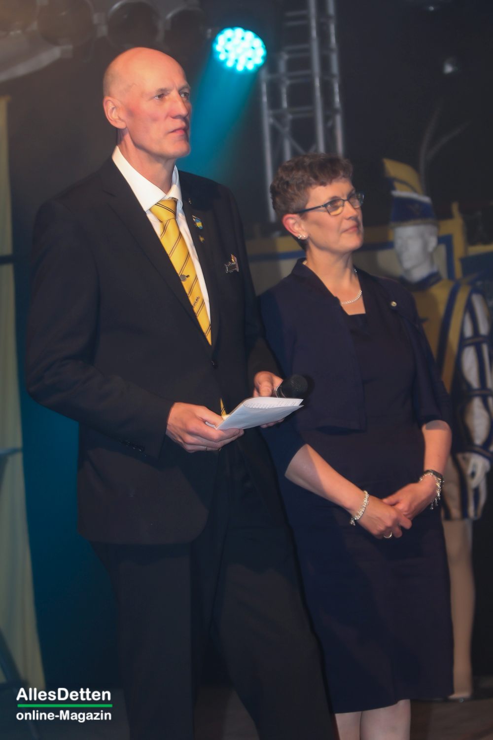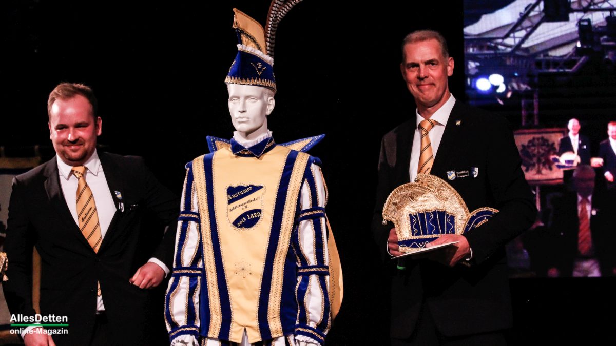 Mit dem eigentlichen Geschenk, welches er dann den Austumern überreichte, sorgte er für viele große Augen: ein neues Prinzenkostüm in blau-gelb. – Und noch etwas brachte Peter Fehlings mit, aber dazu später.