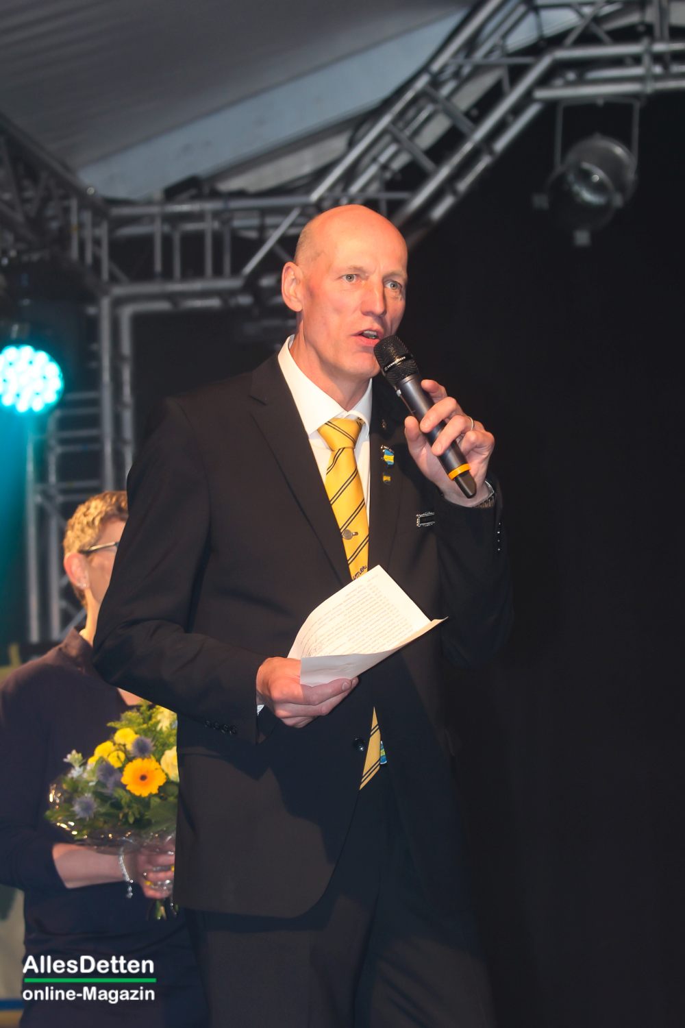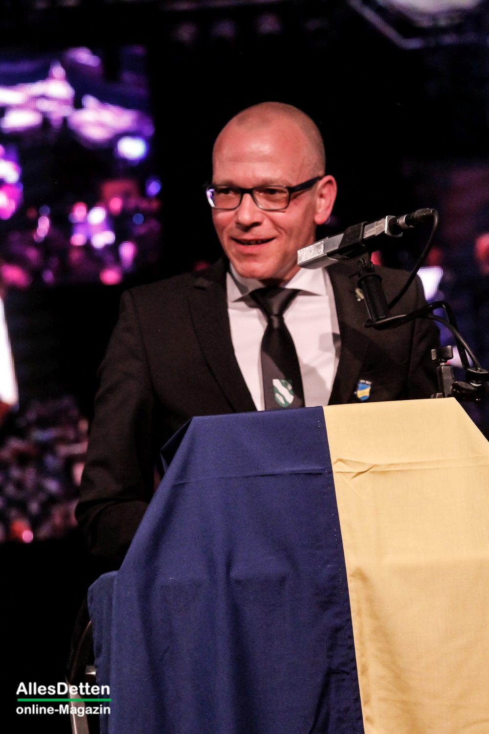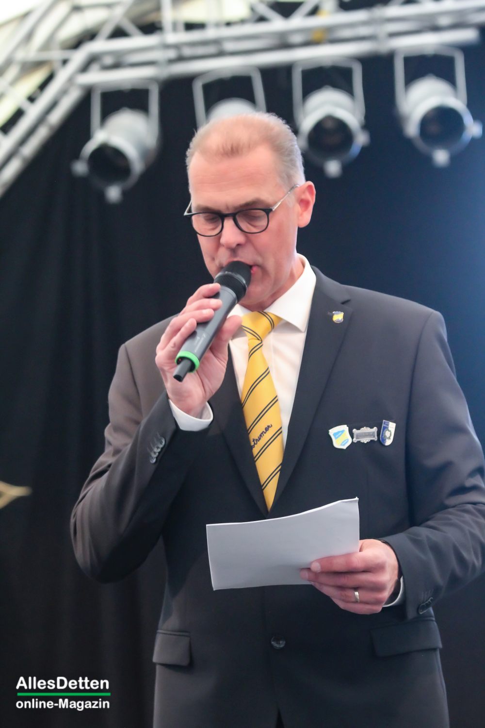 Mit dem eigentlichen Geschenk, welches er dann den Austumern überreichte, sorgte er für viele große Augen: ein neues Prinzenkostüm in blau-gelb. – Und noch etwas brachte Peter Fehlings mit, aber dazu später.